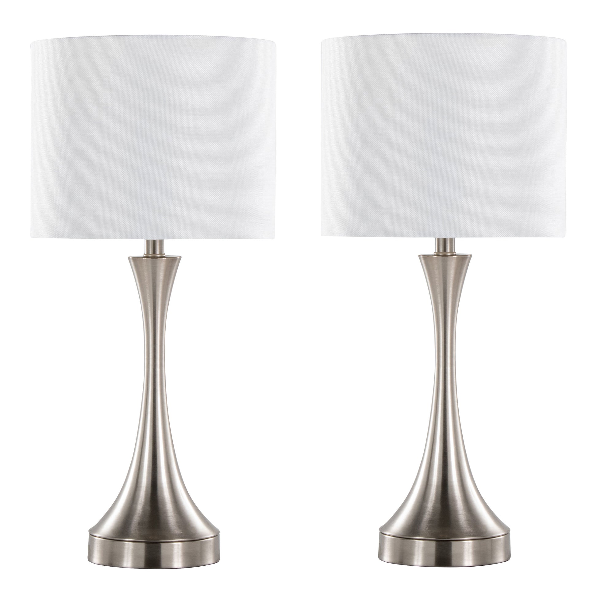 Lenuxe 25' Contemporary Metal Table Lamp in Brushed Nickel with White Linen Shade and Built-In USB Port from Grandview Gallery by LumiSource - Set of 2