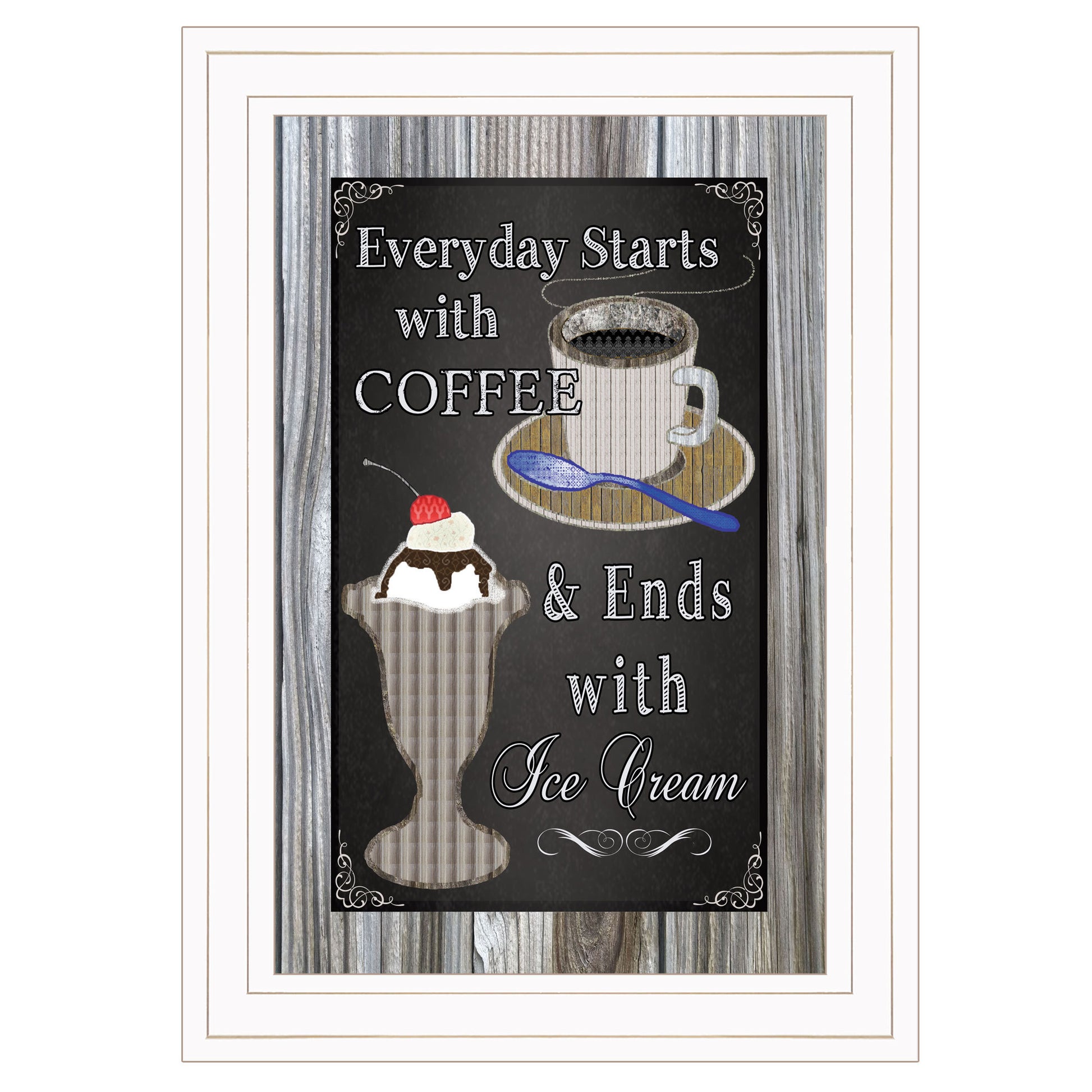 'Everyday Starts with Coffee' Chalkboard framed By Trendy Decor 4U, Ready to Hang Framed Print, White Frame