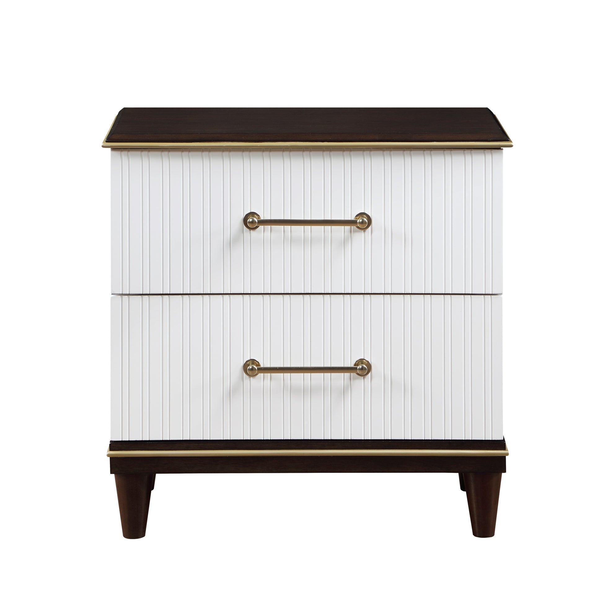 Contemporary White and Cherry Finish 1pc Two Drawers Nightstand 2-Tone Finish with Gold Trim Modern Bedroom Furniture