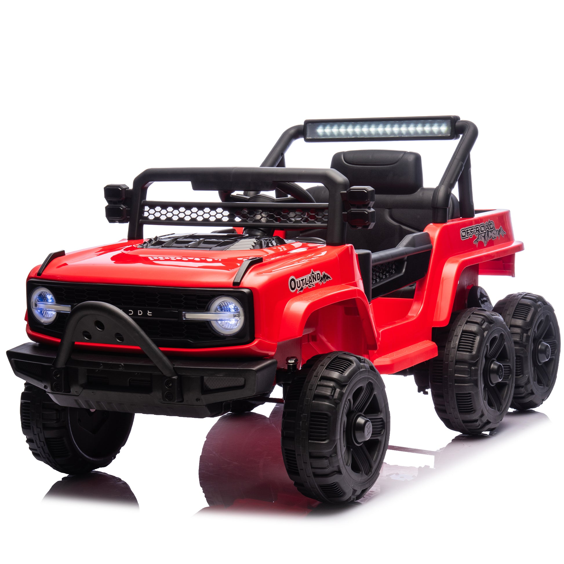 12V Kids Ride On 6-Wheel electric truck car W/Parents Control ,Six-Wheel Suspension,Four motors,Power display,Searchlight,LED Lights,Music&Bluetooth,USB,MP3&Microphone Ports,Slow start For Kids 3-5