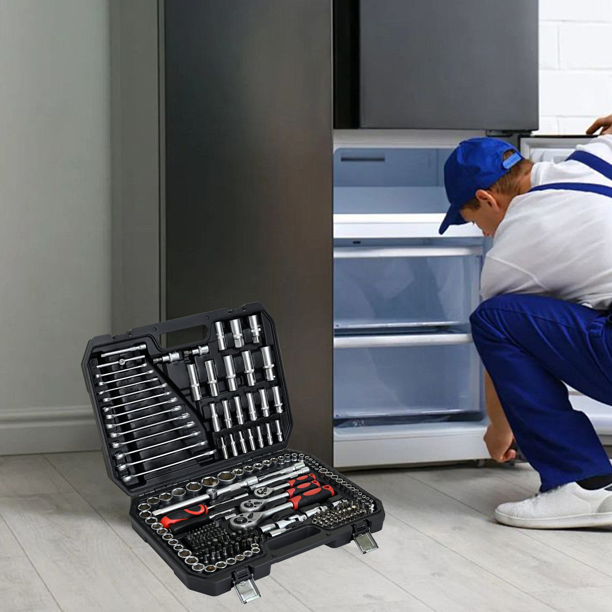 Tool Kit and Socket Wrench Set 216PCs - Basic Portable Manual Repair Tool Set for Home Use, Includes Case and Ratchet Wes and Wrenches