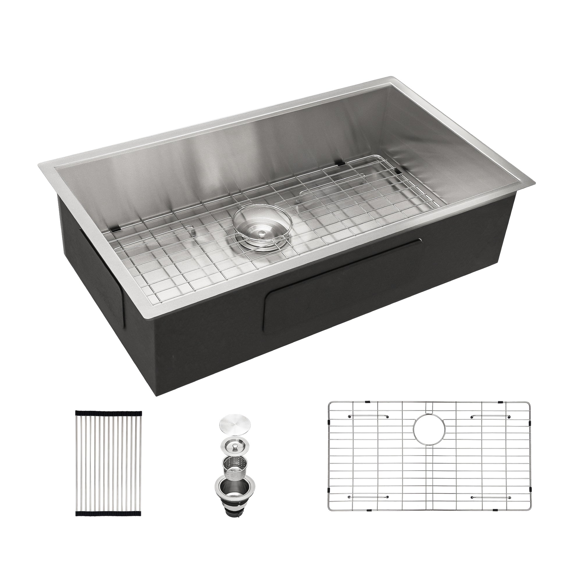 - [Included in the Package] Comes with this kitchen sink: 1 x 304 stainless steel dish grid, 1 x drain assembly, 1 x drying rack,1 x installation clips, 1 x cutout template and installation Guide.