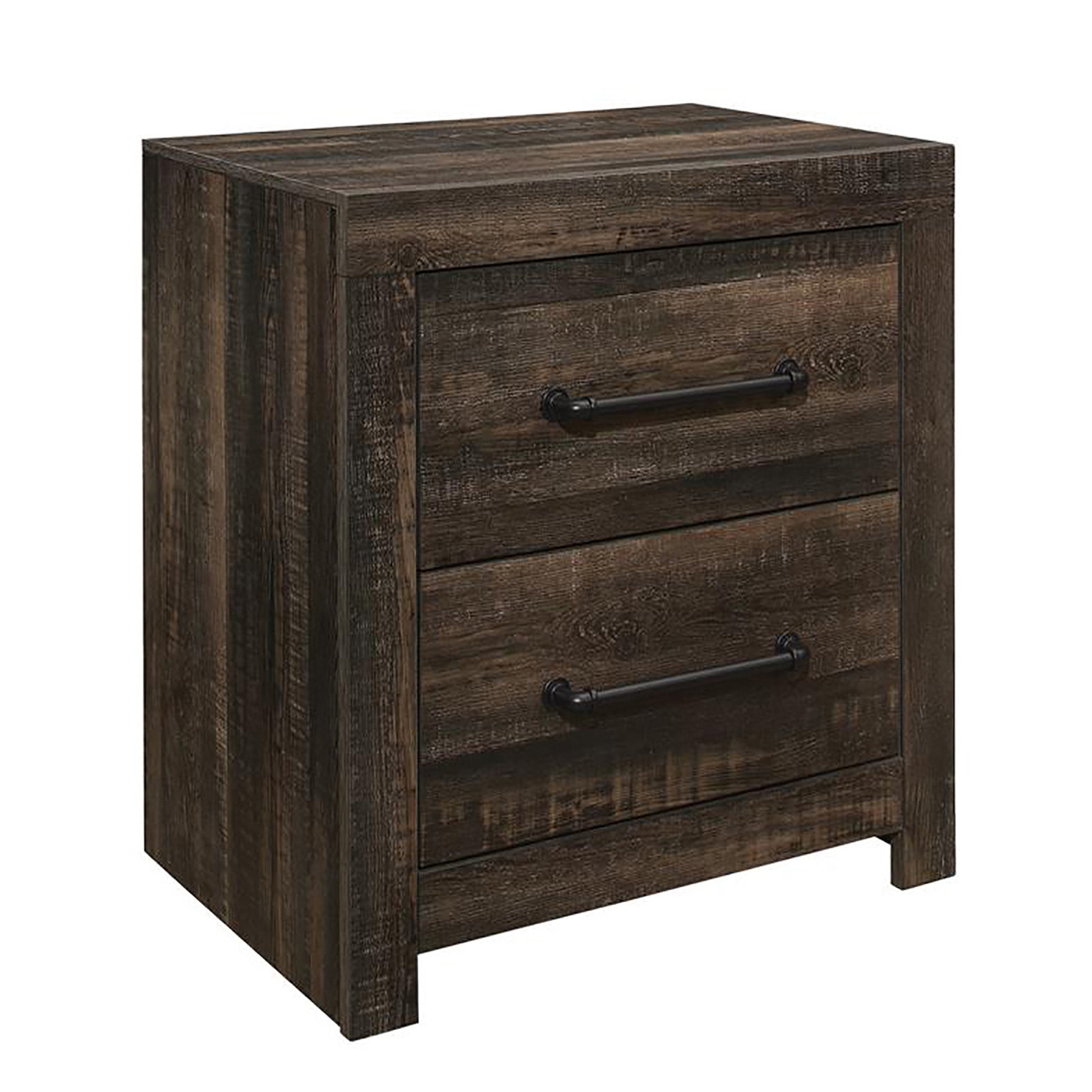 Modern Style Monica Dark Oak Nightstand with Spacious Drawers and Black Bar Handles