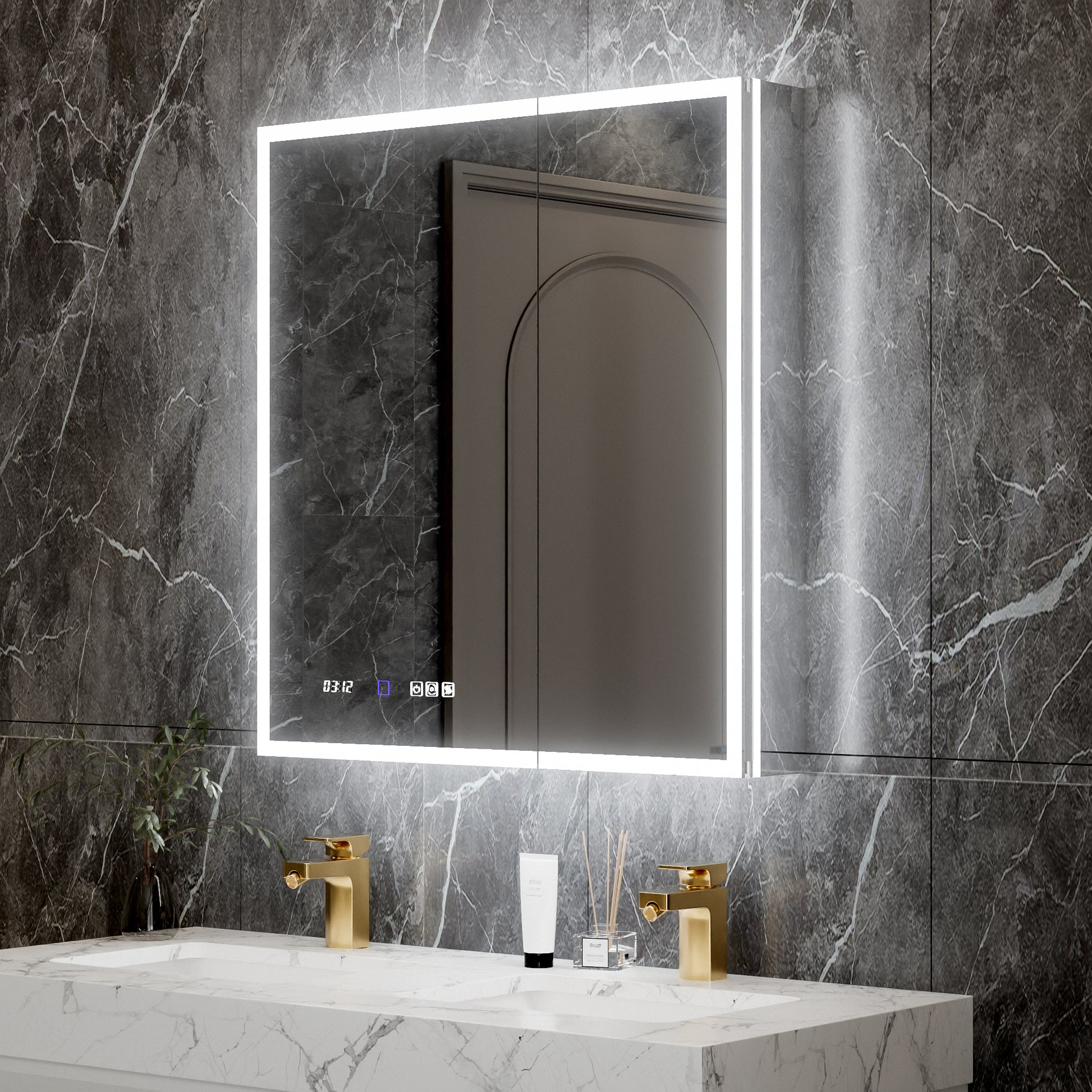 30*32 inch Smart LED Medicine Cabinet with GFCI Outlet & Blum Hinges,Front&Backlit ,Buil Built-in High-Power Outlet ,Stepless Dimming & Anti-Fog,Integrated Design,Multifunctional Bathroom Storage