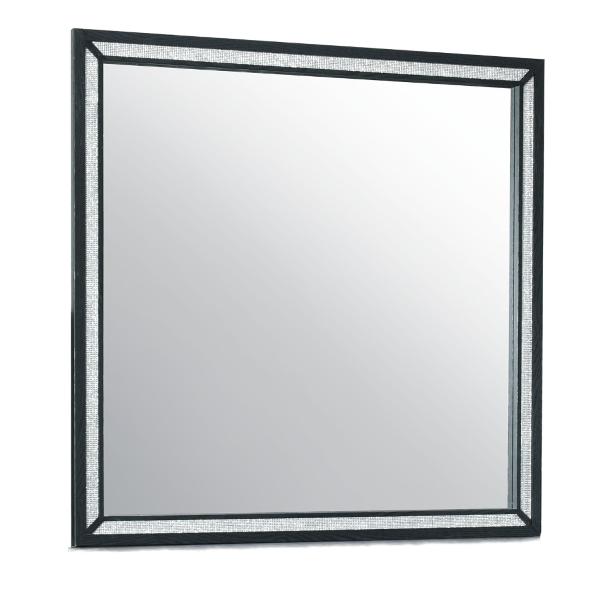 Carlos Modern Design Black Mirror with Glamour Accents in Solid Wood and MDF, 44.09 x 39.57 inches