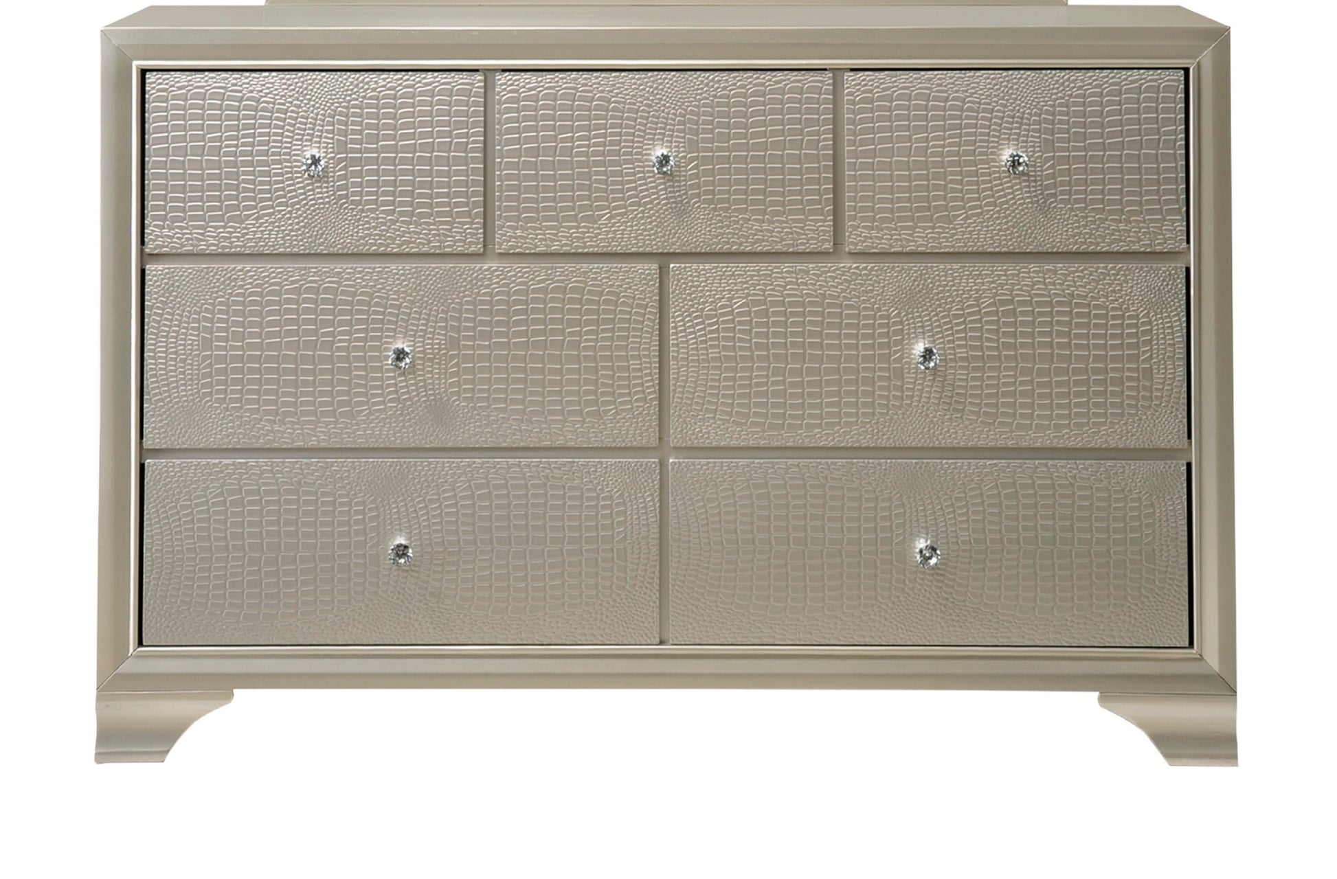 1pc Modern Glam Style Champagne Finish Glam Seven Drawer Dresser Embossed Crocodile Pattern Wooden Bedroom Furniture