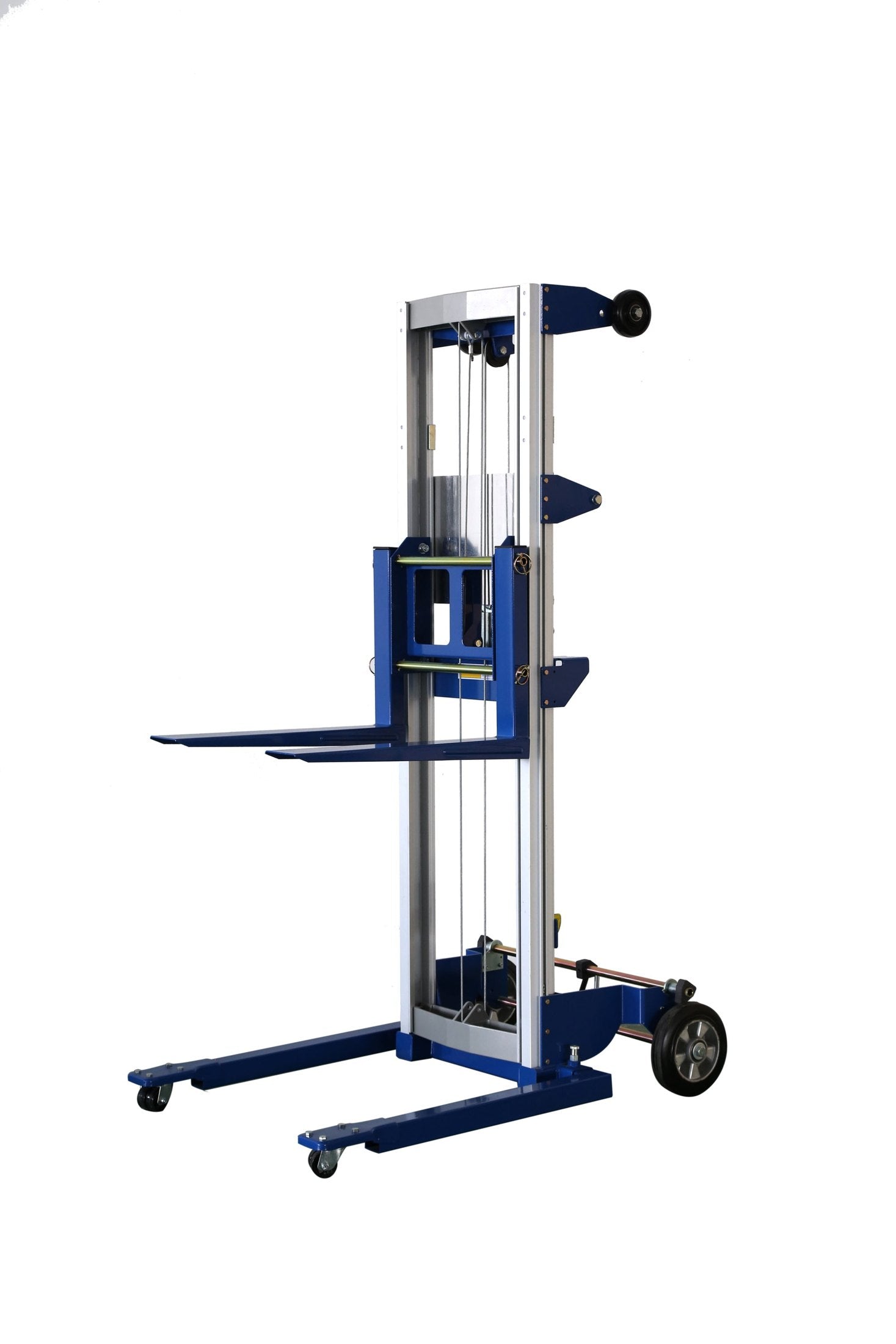 Lightweight Straddle Manual Hand Crank Stacker, Easy to move, 400lbs capacity, 122Max lift height, Blue