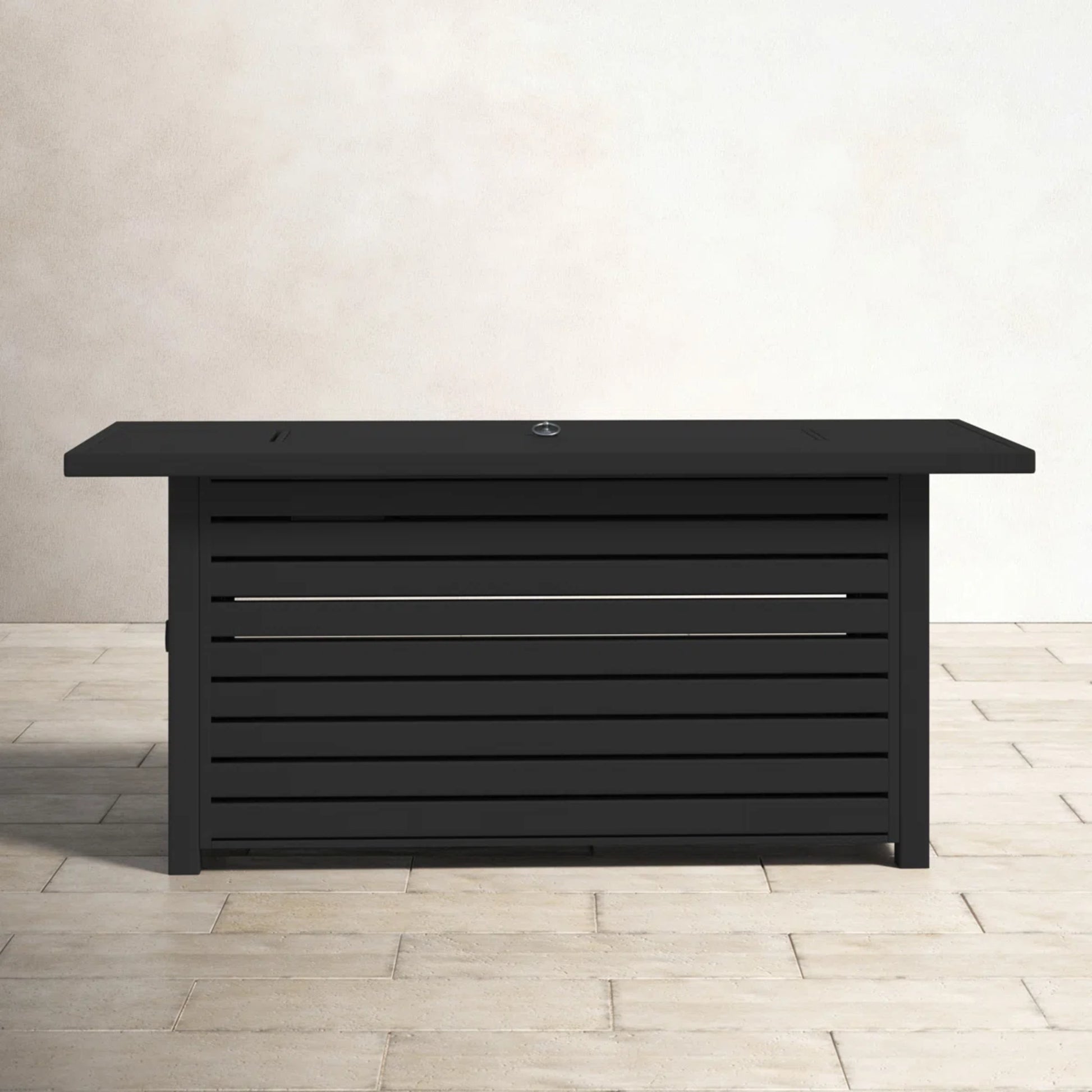 Steel Propane/Natural Gas Outdoor Fire Pit Table with Lid, Black Steel, 54x22x25 inches