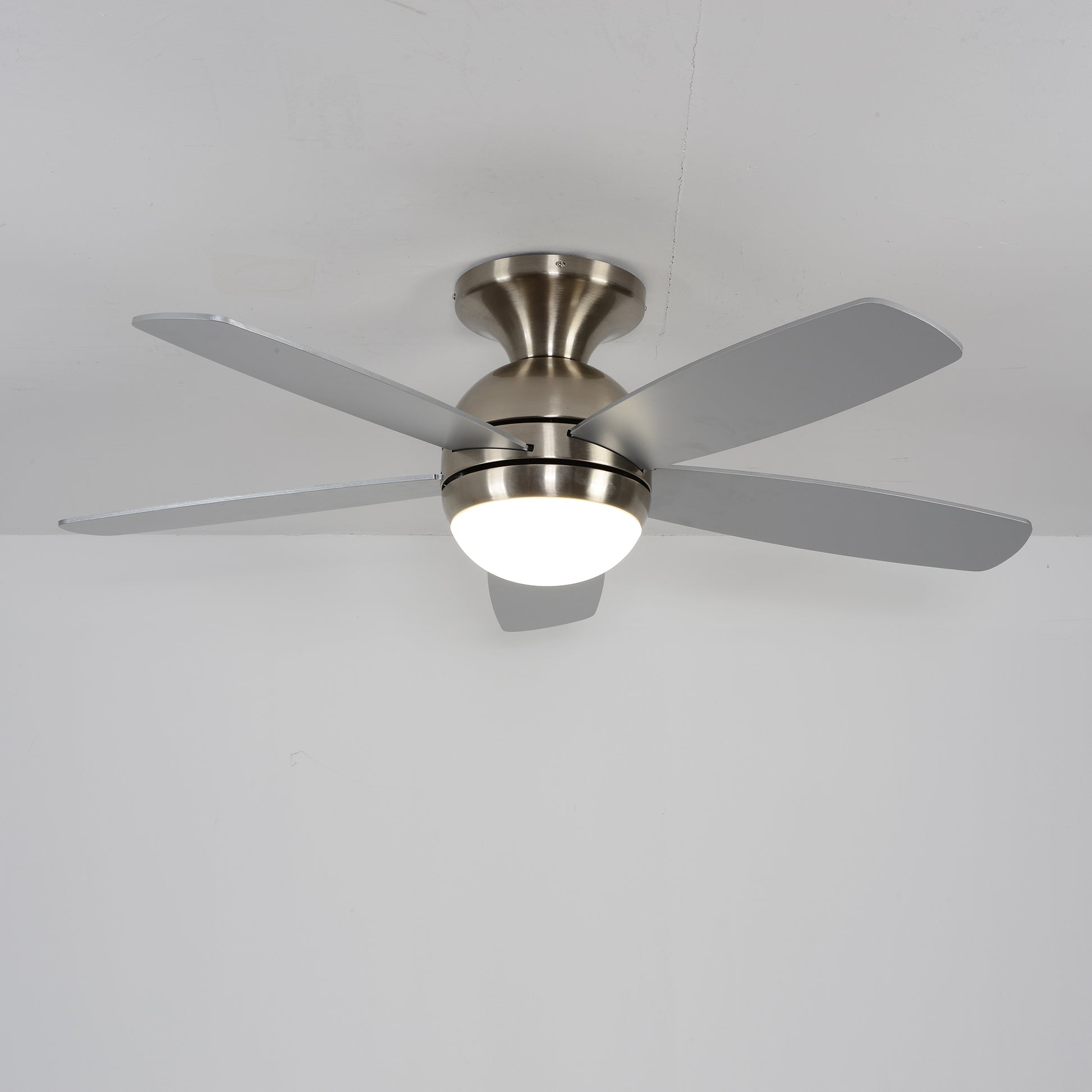 52 Inch 5 PCS Plywood Reversible Blades Ceiling Fan With Light Kit 3 Color , LED, DC 6 Speed ,Remote Control Ceiling Fan for Patio Living Room, Bedroom, Office,Indoor.(( Sliver + Brushed Gold)