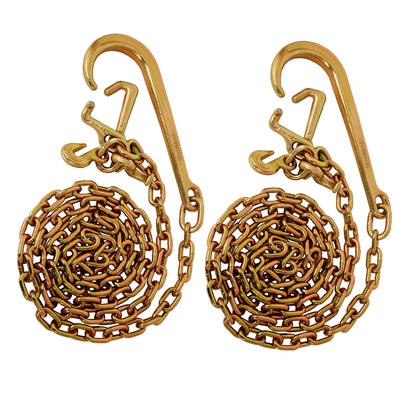 Grade 70 5/16 Inch x 10 Feets Transport Tow Chain J Hook Long Shank w/R T J Grab Hook Yellow Zinc - 3,700 lbs. Safe Working Load 2pcs