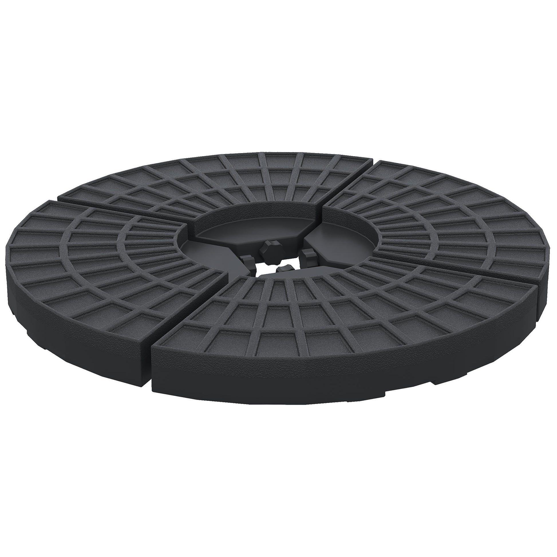Outsunny 4 Pieces Round Patio Umbrella Base, Cantilever Offset Outdoor Umbrella Weights, 52 Liters Capacity Water or 112 lbs Capacity Sand Plates Set, Black