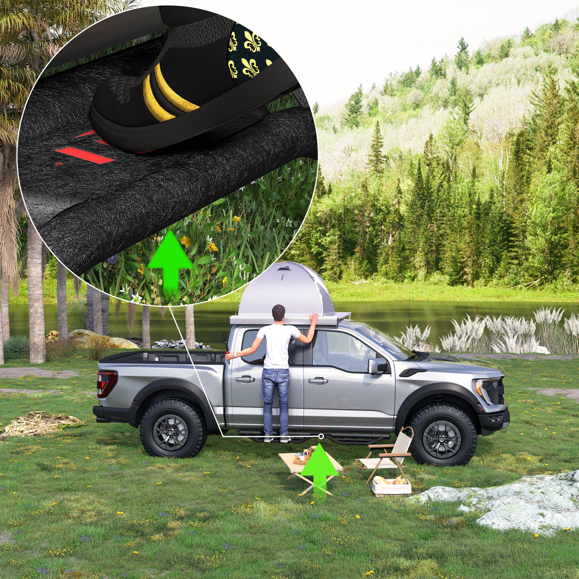 - Strong & Durable: Our running boards are built to last, with a unique powder coating that resists rust and corrosion. The laser-cut step plate offers a non-slip surface and reinforced grip, supporting up to 700 lbs. without bending.