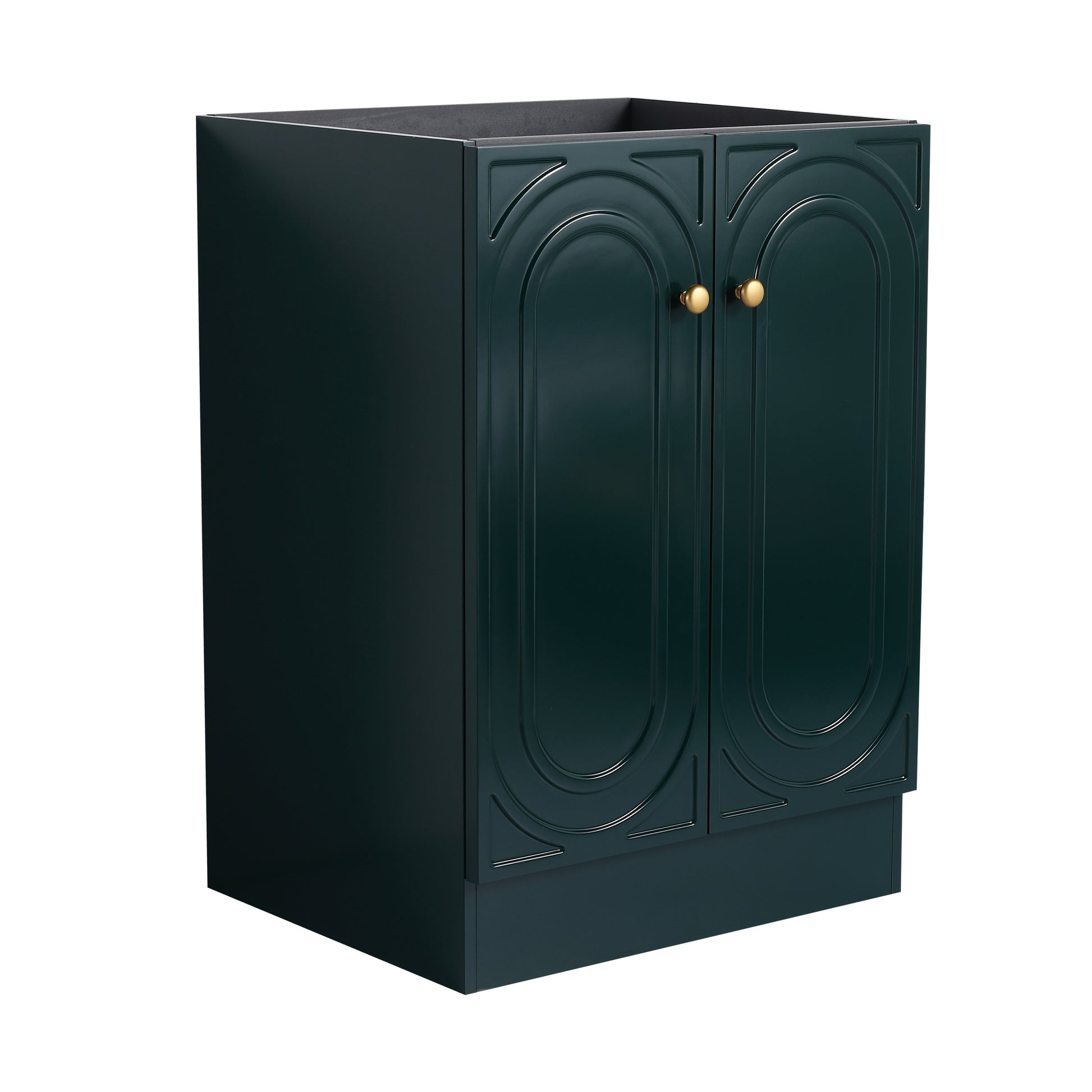 Modern 24 Inch Freestanding Bathroom Vanity with 2 Soft-Close Cabinet Doors in Dark Green Plywood - Excluding Sink