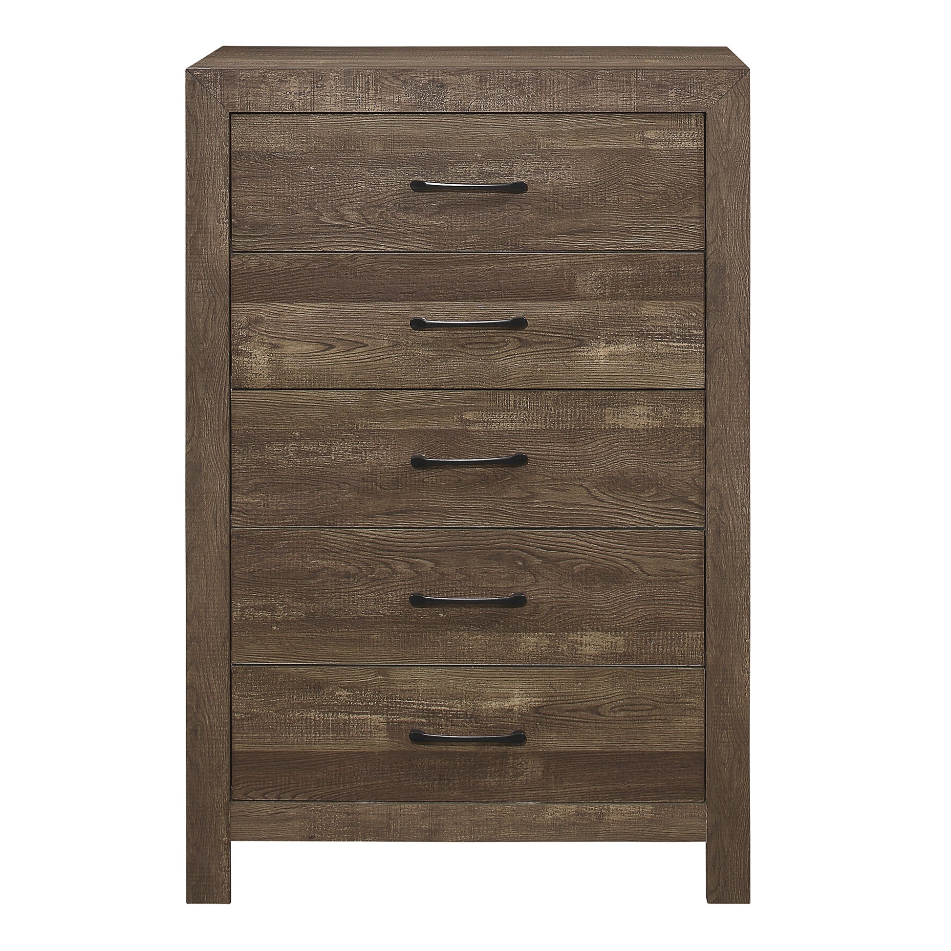 Simple Look Rustic Brown Finish 1pc Chest of 5x Drawers Black Metal Hardware Bedroom Furniture