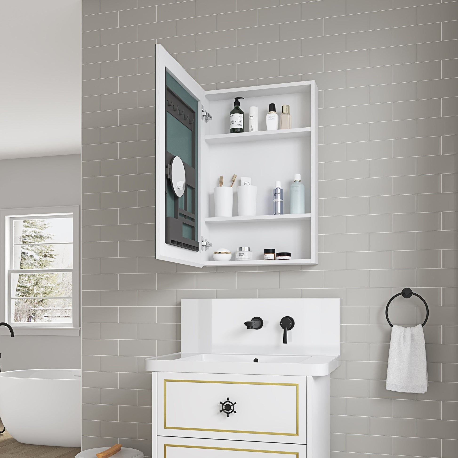 - Multiple Storage Spaces: Designed with pegboard or organizer on door, and multiple height shelves, this medicine cabinet helps you make full use of the dimensional space in your room, easily and neatly sorted, such as razors, personal care products, toothbrushes, cosmetics, etc.,makes the room more spacious and tidy. Tiny items like hair ties will no longer missing. Meanwhile, The hidden design prevents dust and protects your privacy.