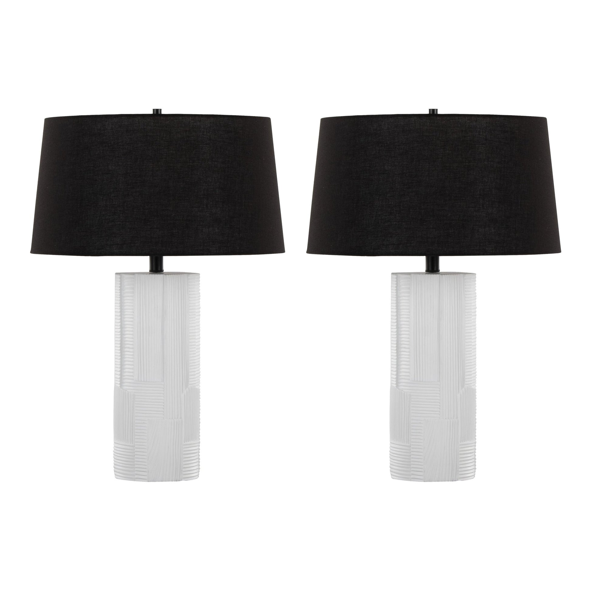 Petra 26' Contemporary Polyresin Table Lamp in Cream Polyresin and Black Metal with Black Linen Shade by LumiSource - Set of 2