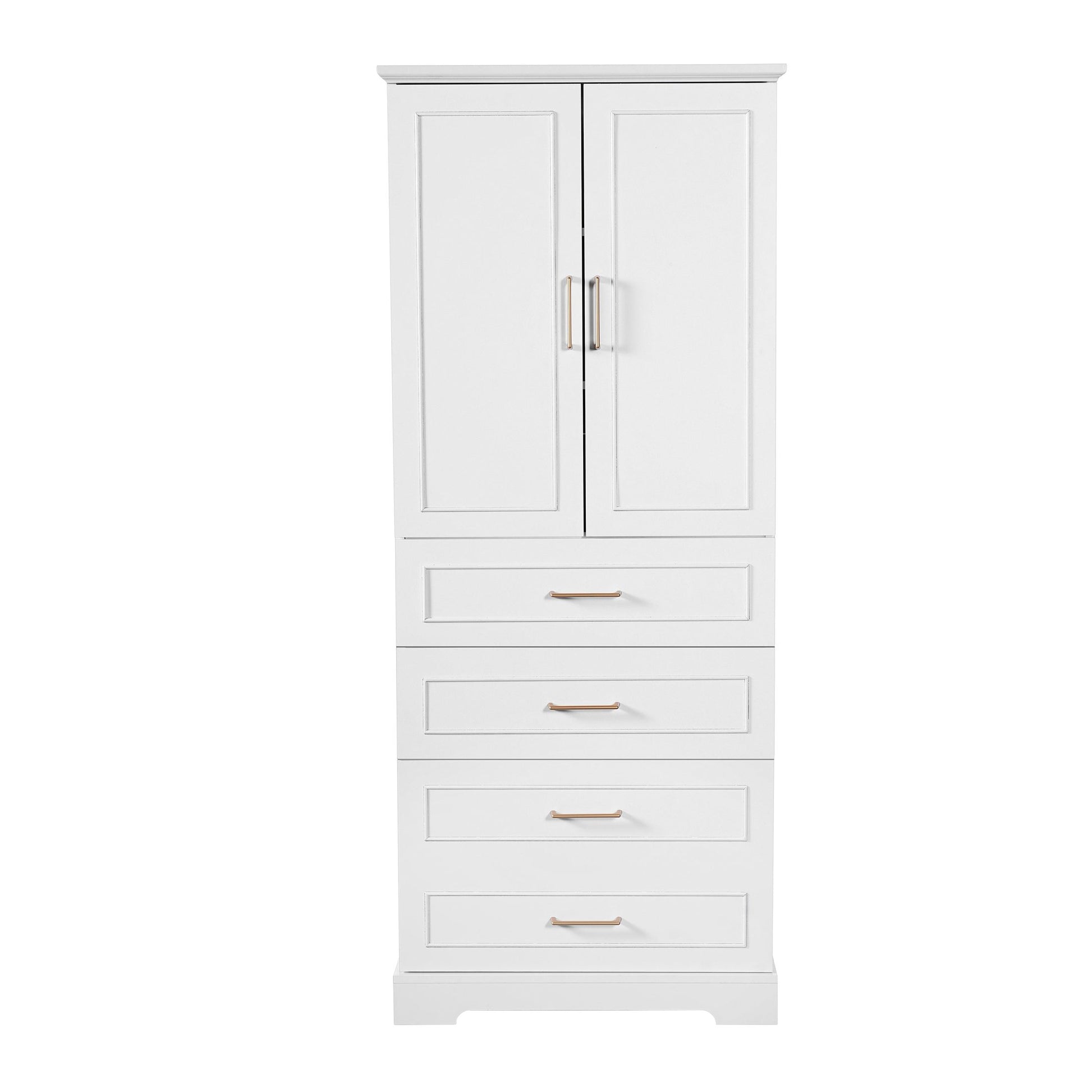 Modern Elegant Bathroom Cabinet with 3 Drawers, Adjustable Shelf, MDF Panels, Steel Handles, Soft-Close Doors, 72.2'' Tall, White