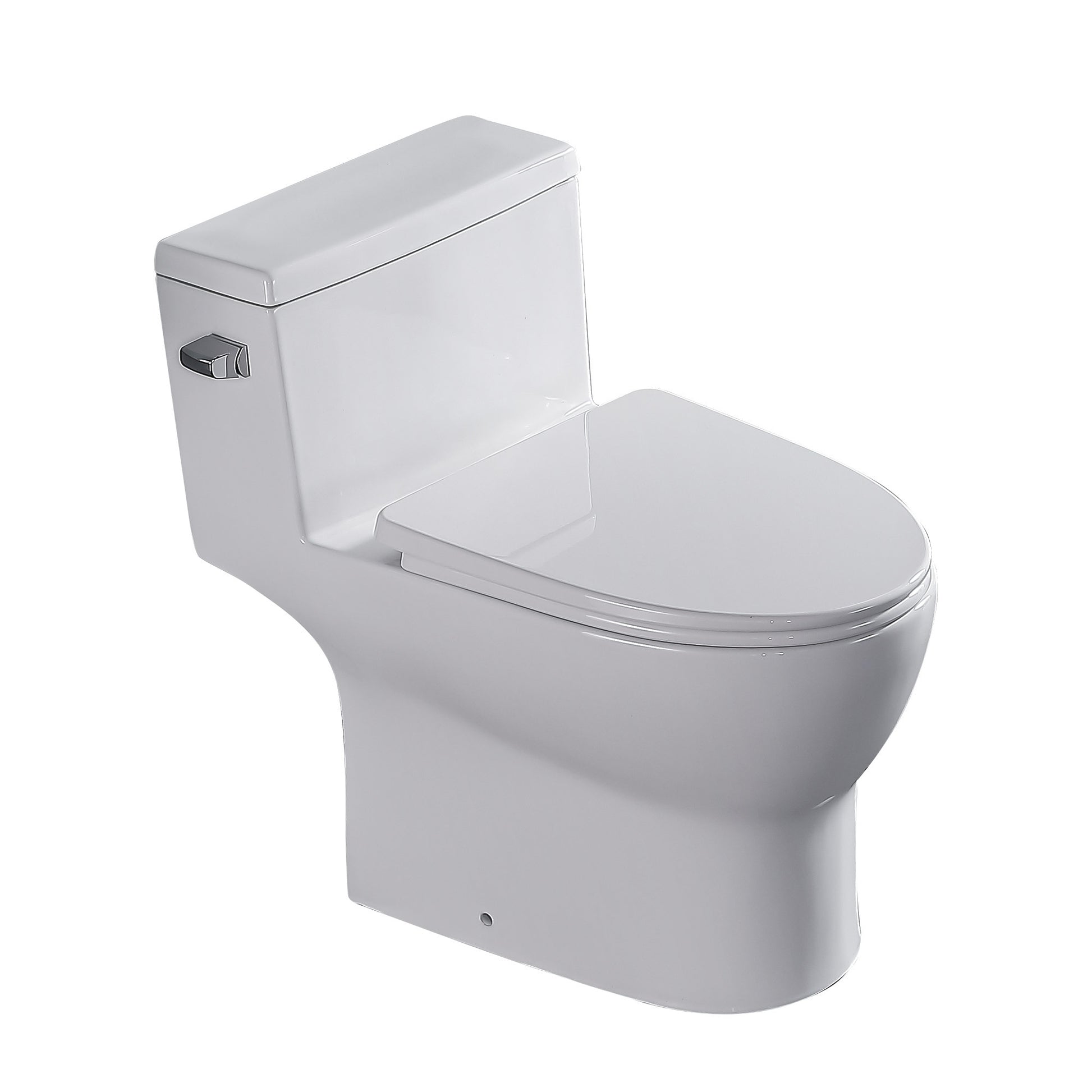 Modern Ceramic One-Piece Toilet with Soft Closing Seat in White, 28.87 x 16.37 x 27.50 inches