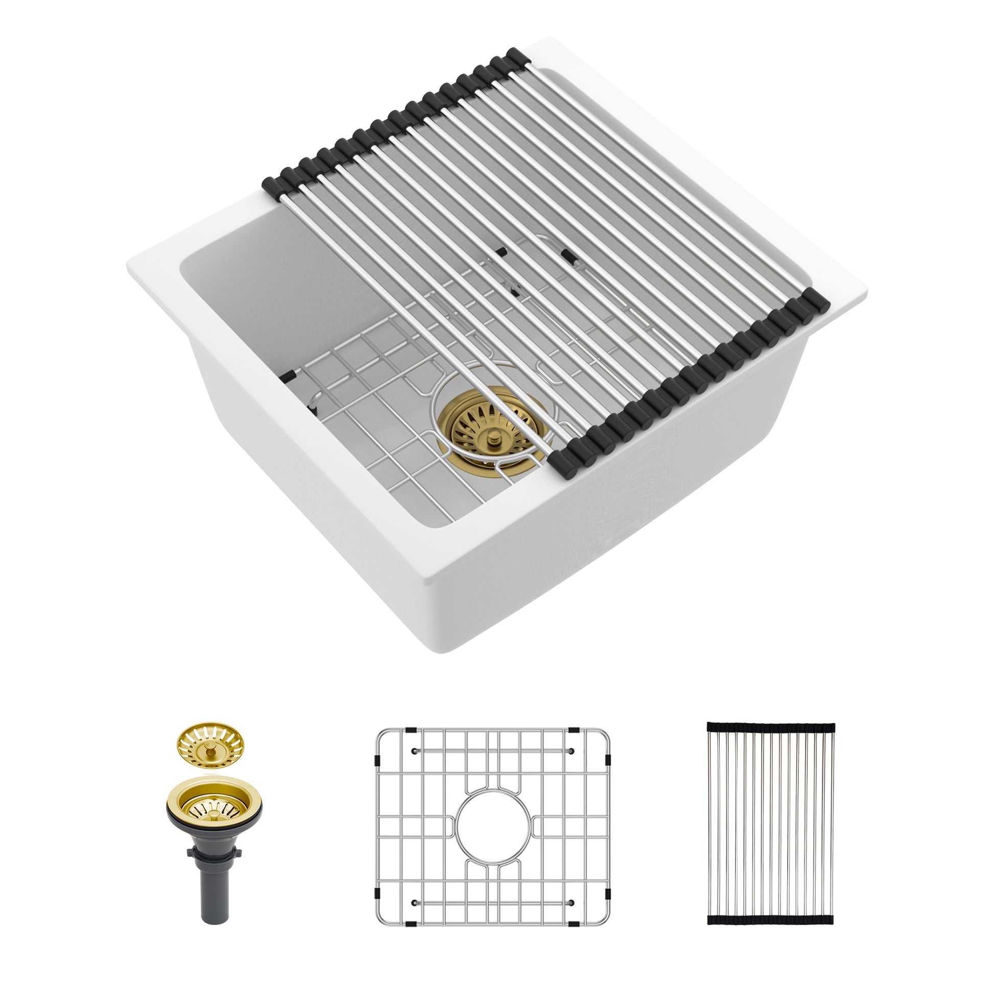 17.71'x15.74' Elegant Quartz Kitchen Sink Undermount White Granite Composite