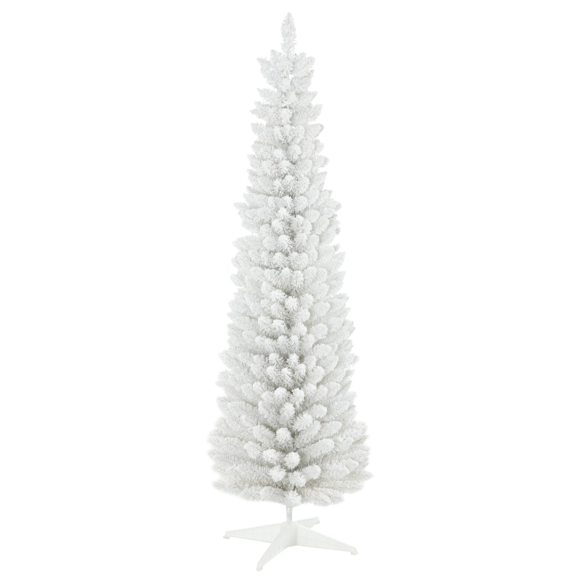 HOMCOM 6' Snow Flocked Artificial Pencil Christmas Tree, Slim Xmas Tree with Realistic Branches and Plastic Base Stand for Indoor Decoration, White