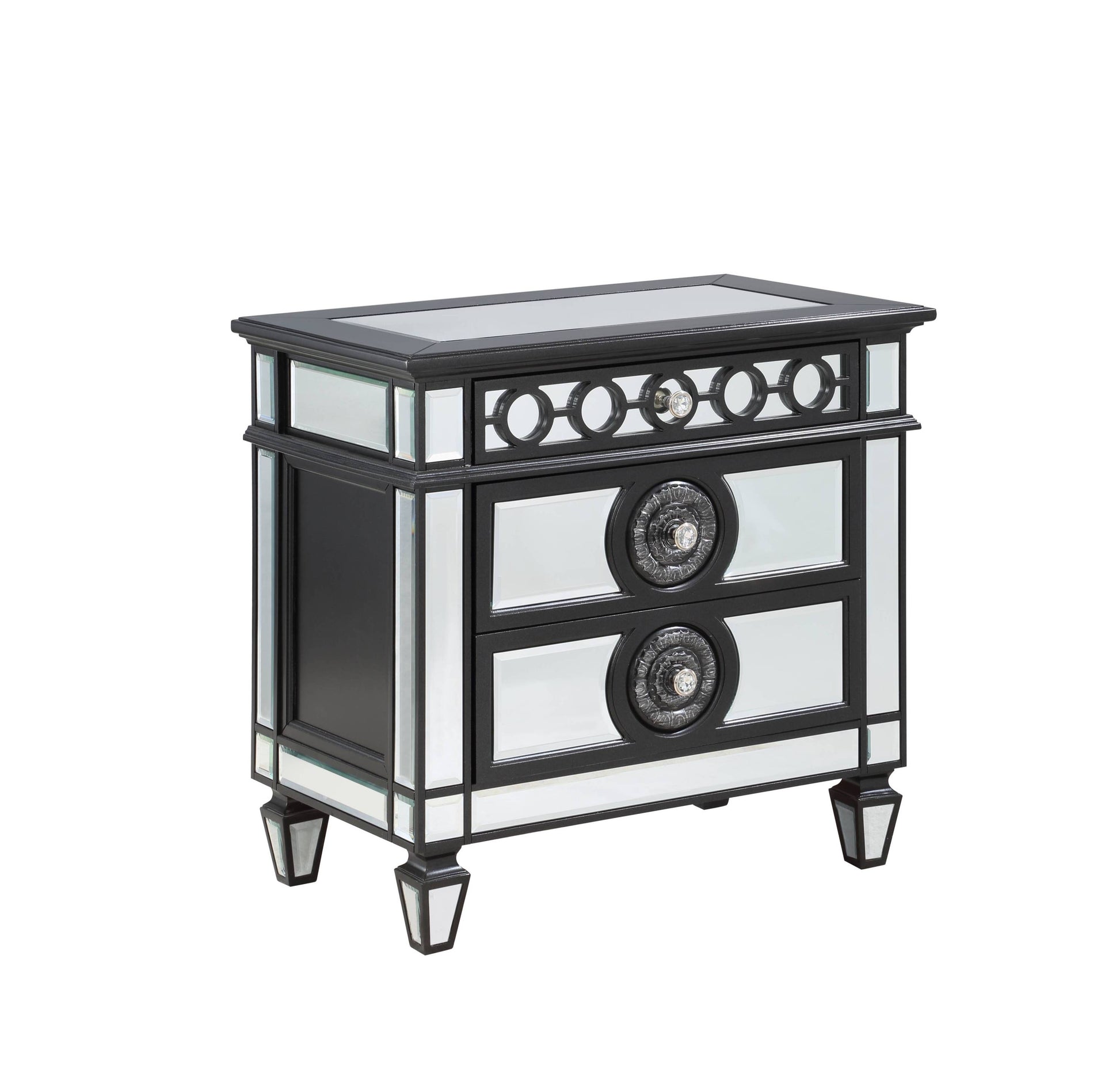 Varian II Mirrored, Black & Sliver Finish Nightstand