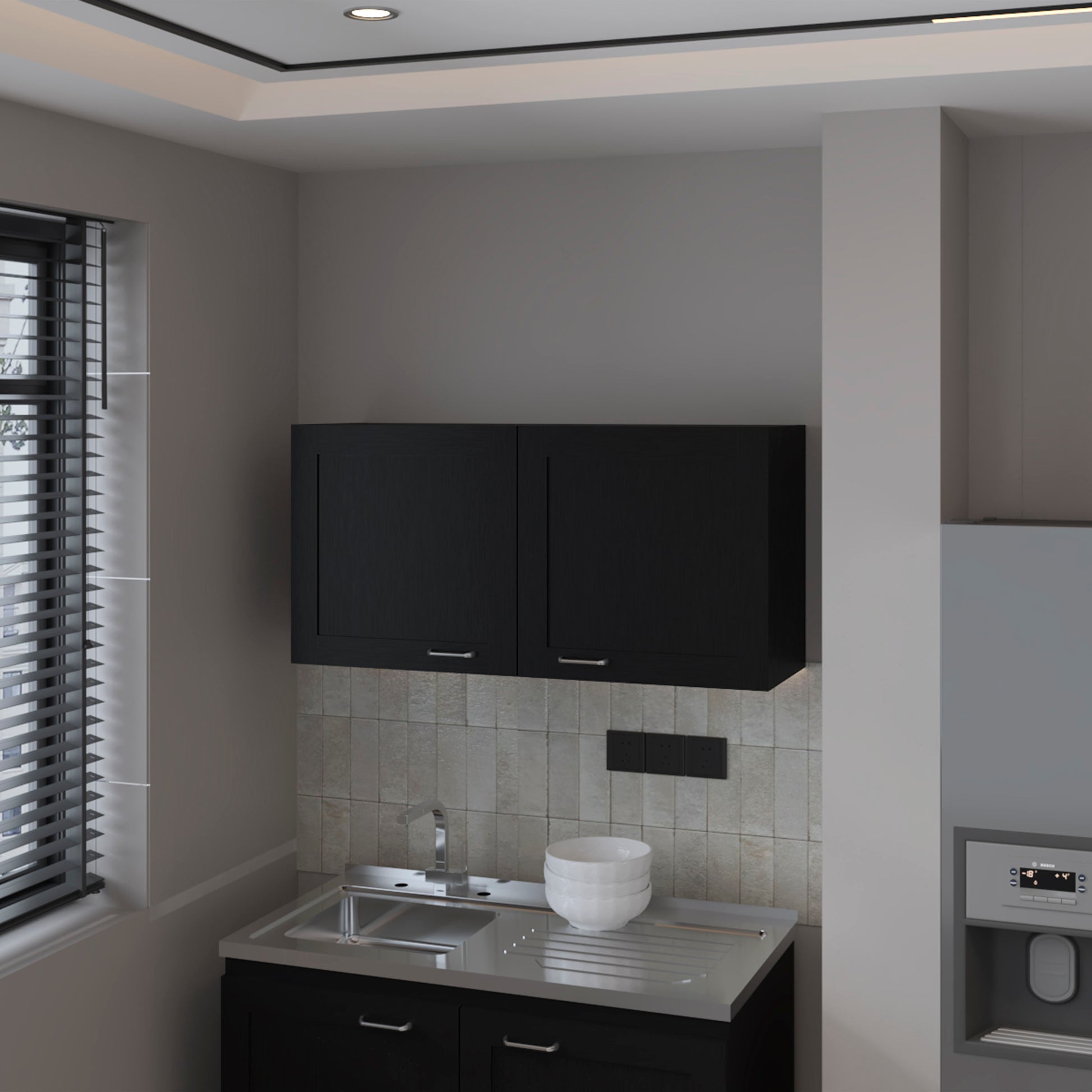 FM FURNITURE Nakya Kitchen Wall Cabinet with 2 Doors, Black