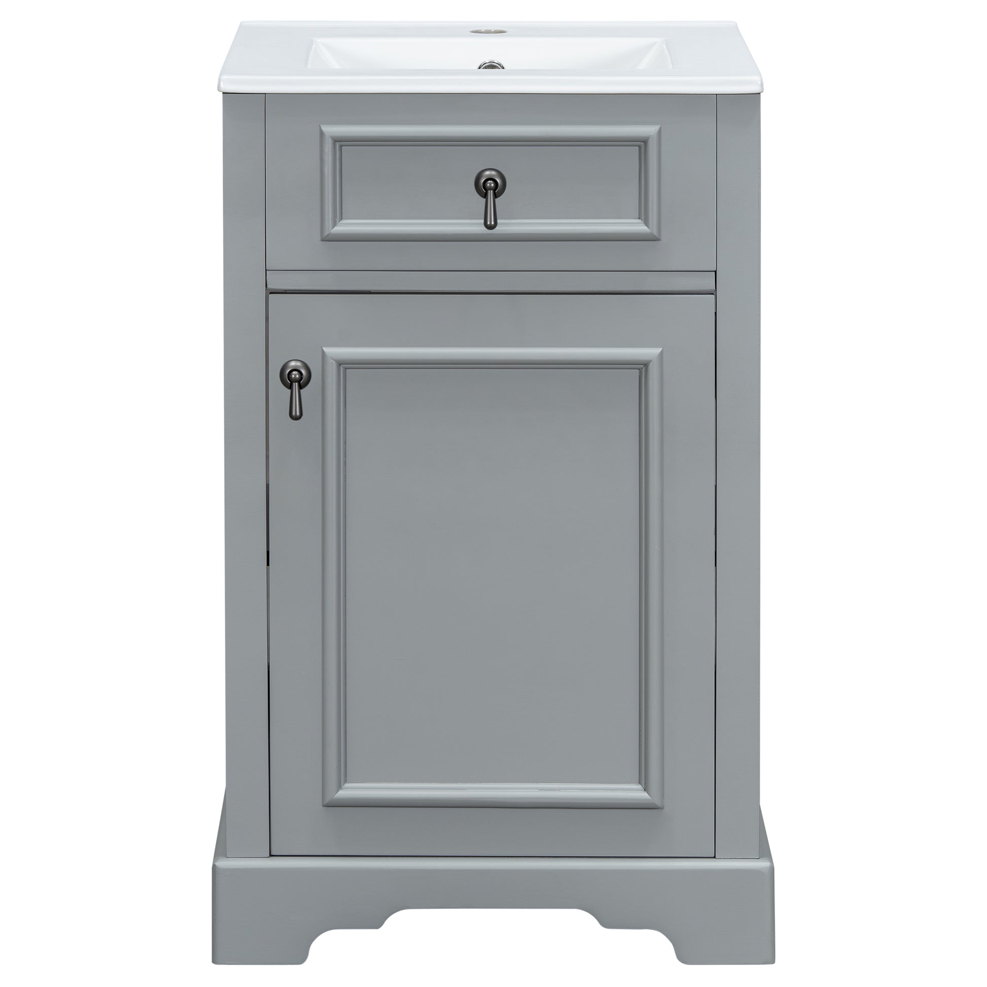 Modern Bathroom Vanity with Ceramic Sink, Soft Close Door, Adjustable Shelf, and Storage Rack - Grey Solid Wood 20-Inch