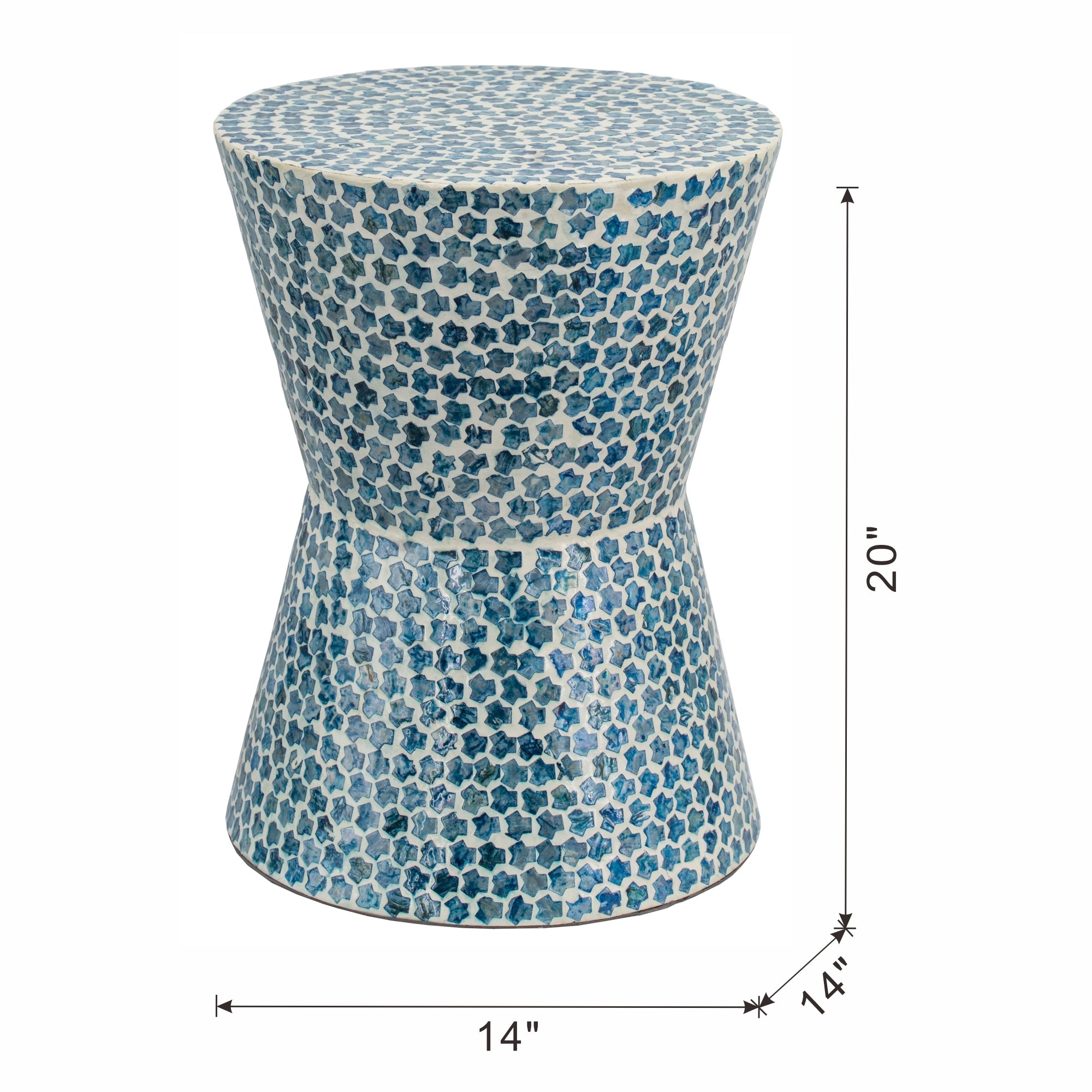 D14x20' Tapered Round Garden Accent Stool, Capiz Side Table, Blue