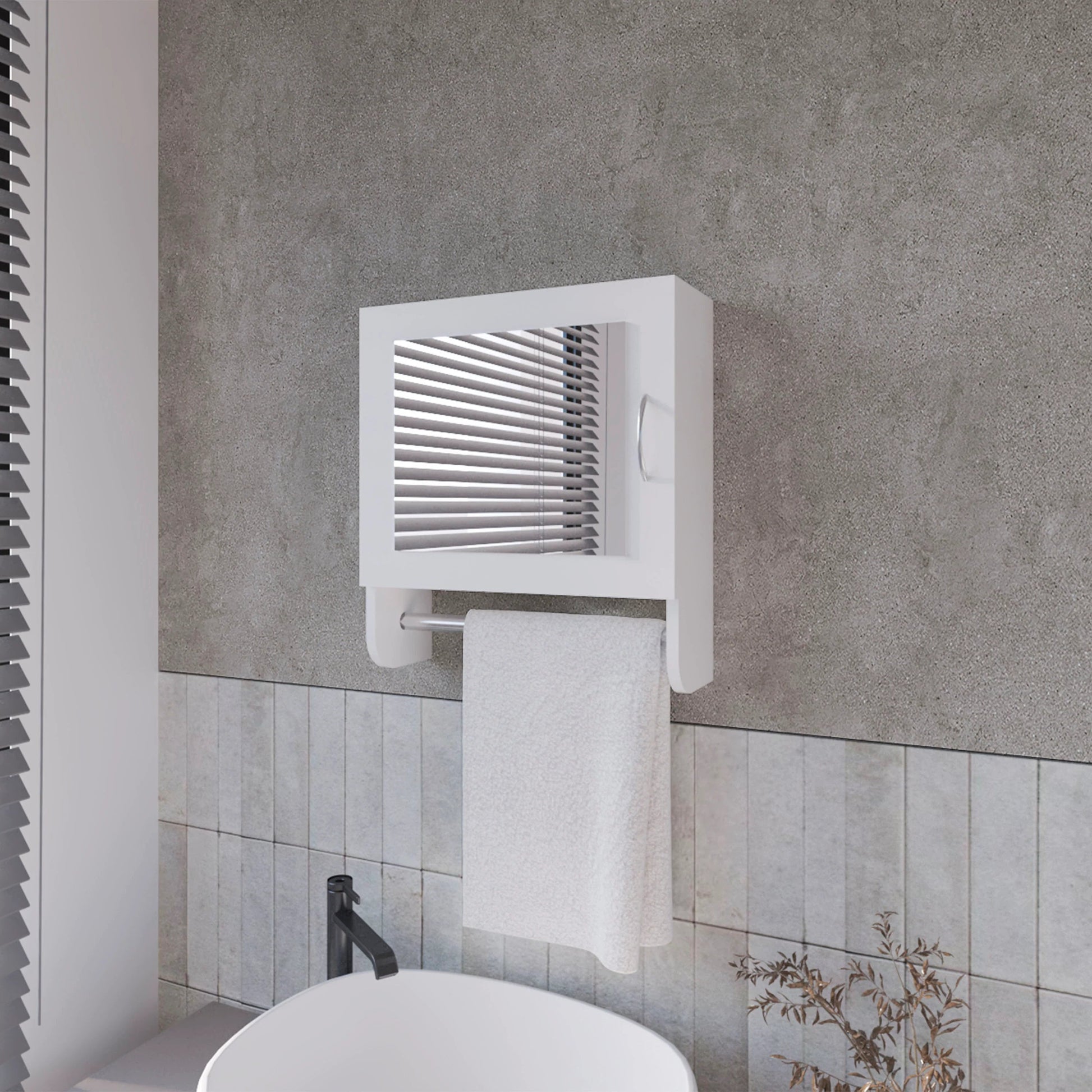 White Medicine Cabinet with Towel Bar and Included Mirror