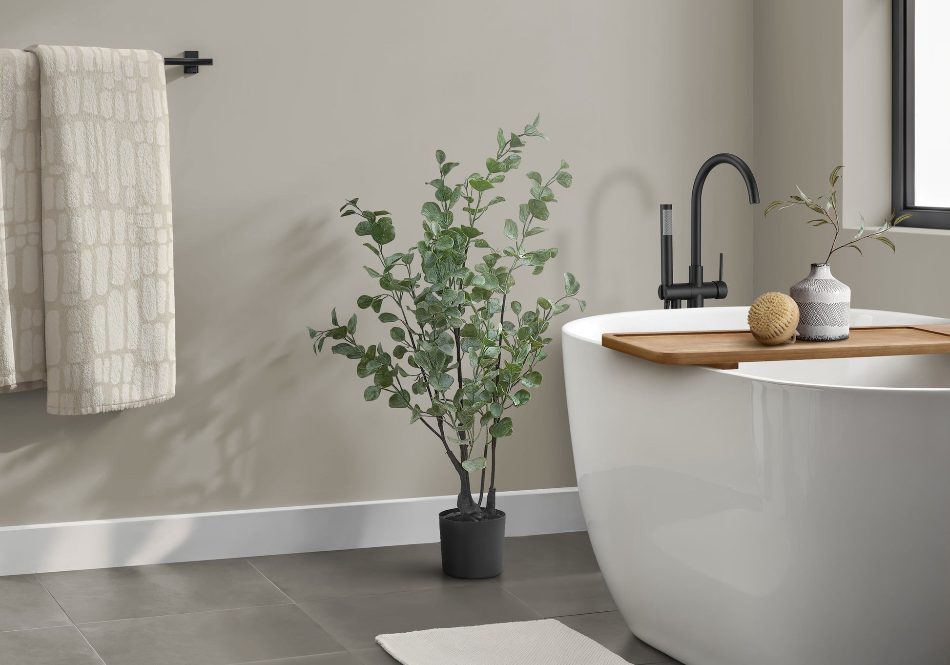 - Add a touch of nature to any space with this 35' tall indoor artificial Eucalyptus tree in a black pot