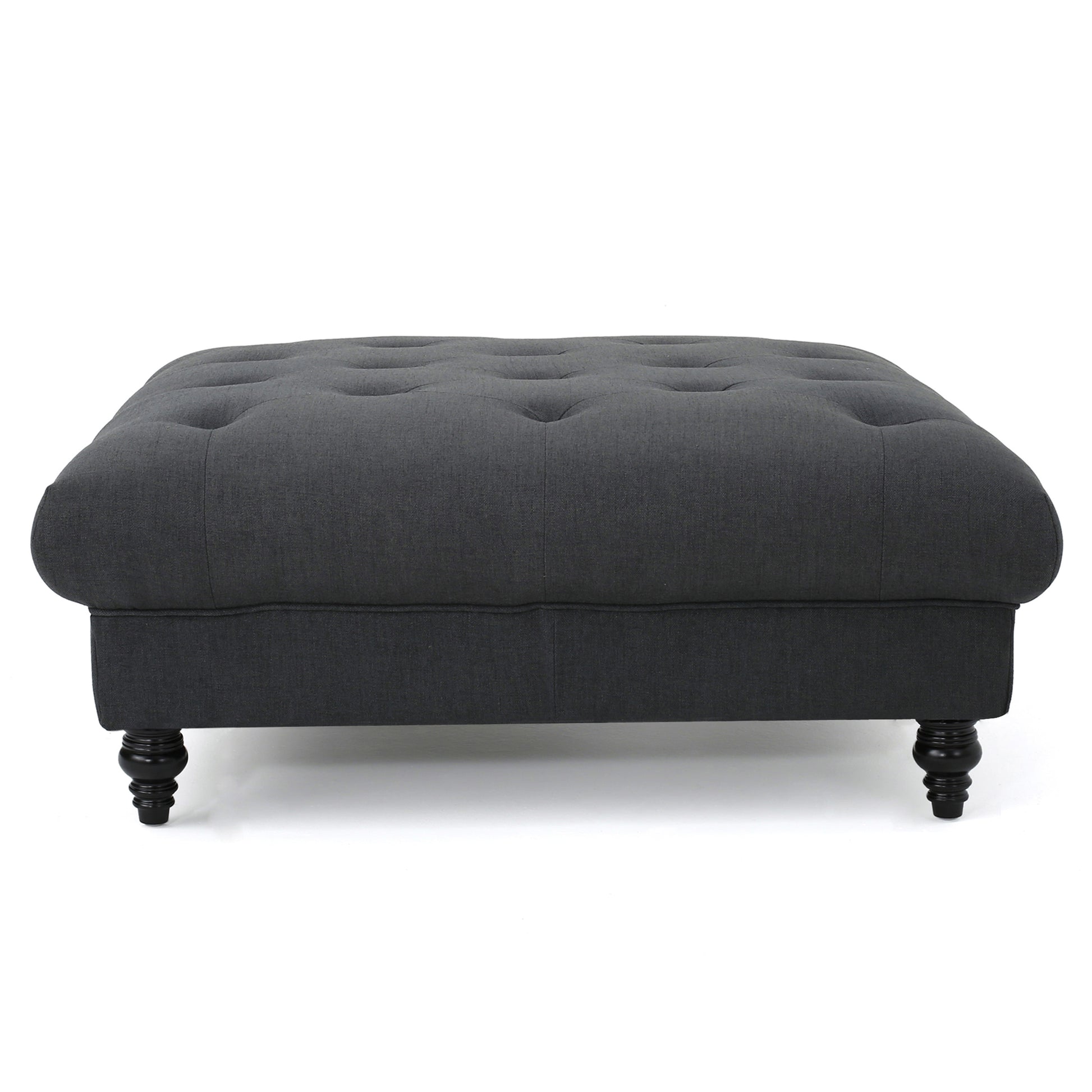MADRID KD Tufted Ottoman with Button Tufting and Turned Feet in Dark Gray Polyester Fabric