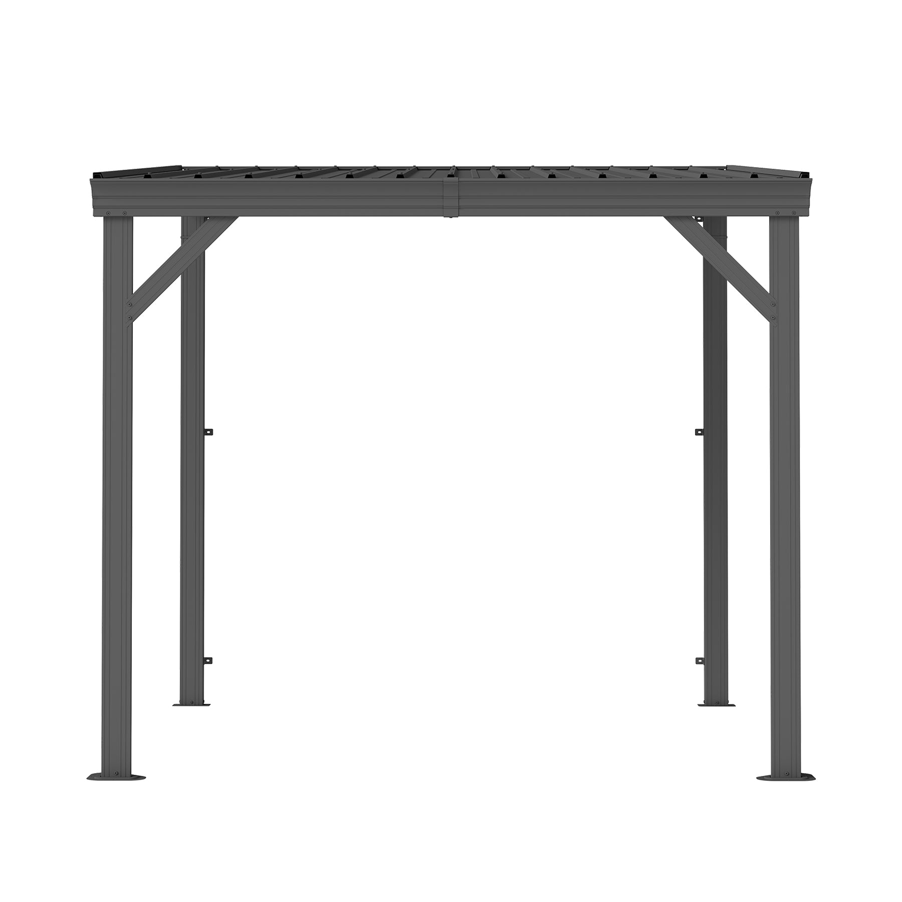 - Sloped Roof with Hidden Gutter System – Designed with a sloped galvanized steel roof and built-in flutes, this gazebo efficiently channels rain and snow through a hidden gutter system that directs water down the poles—keeping you dry when entering or exiting during wet weather.
