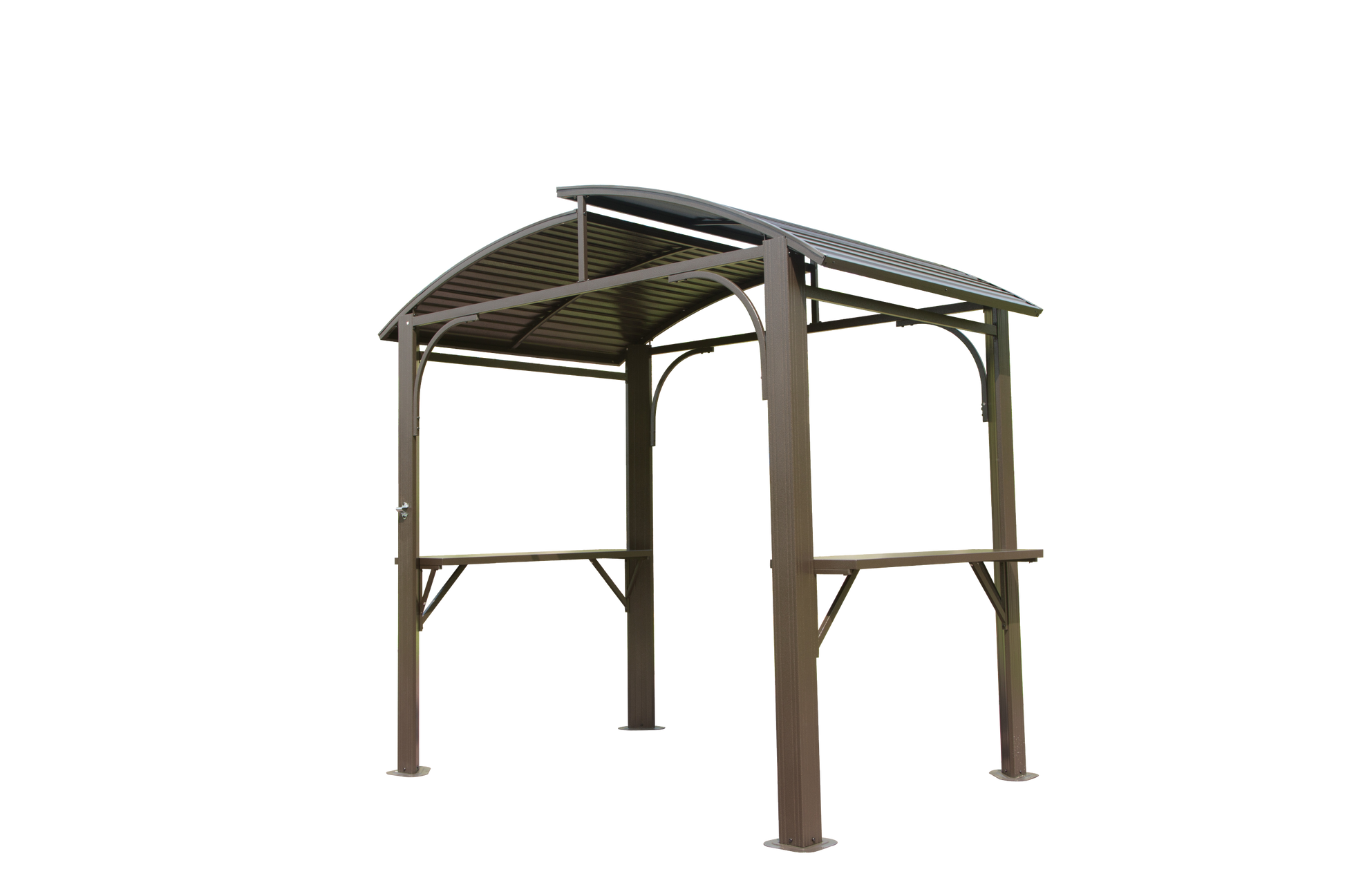8x5FT Arc Roof, Grill Canopy for Outdoor Grill w/Double Galvanized Steel Roof and 2 Side Shelves, BBQ Gazebo Grill Tent for Patio Garden Backyard, Brown