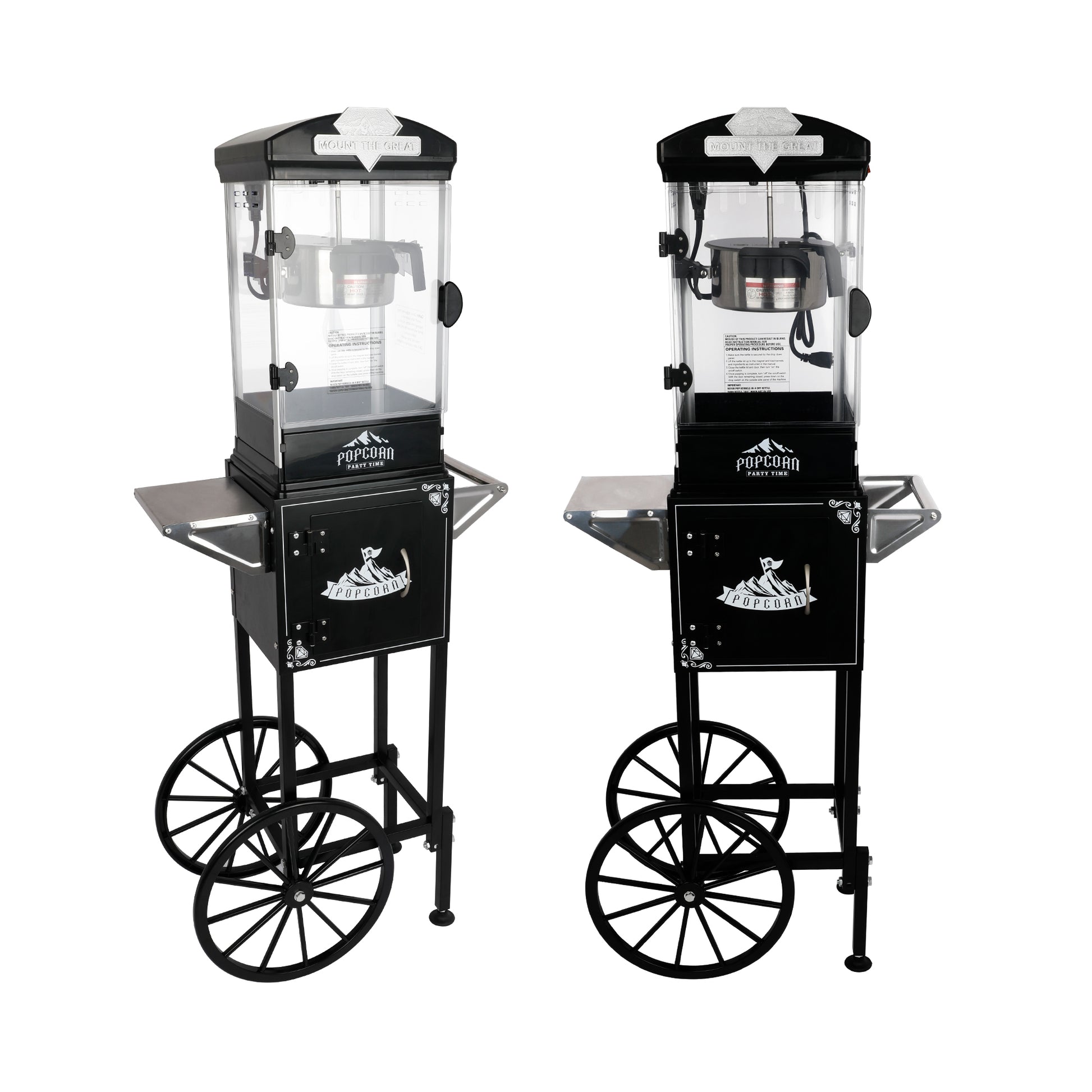 Popcorn Machine with Cart ,Wheels & 10 Oz Kettle Popcorn Maker Measuring 3 plastic spoon Home Theater Popcorn Machine-Black