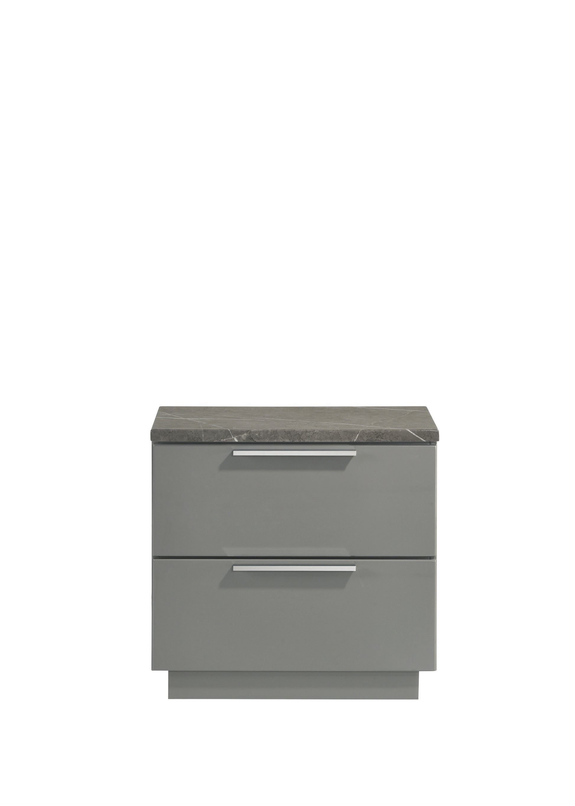 This contemporary nightstand merges sleek style with practical design, making it a superb addition to any modern bedroom. Featuring a two-tone high-gloss marble and lacquer finish with a luxurious marble-patterned top, this nightstand offers a sophisticated look that complements a variety of decor themes. It includes two spacious drawers, both with full extension glides for easy access, and the top drawer is lined with red velvet, perfect for securely storing smaller personal items. The clean lines, compact size, and sleek metal-finished legs make this nightstand an ideal choice for keeping essential items within reach by your bedside.