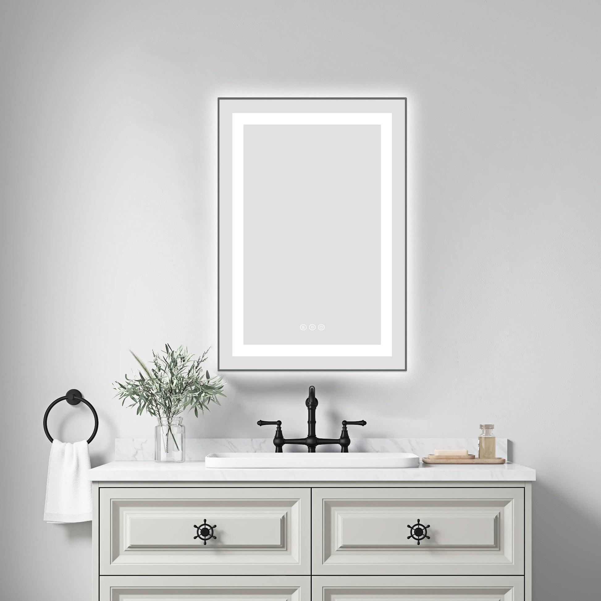 20' x 30' LED Bathroom Mirror with Front and Backlight, Wall Mounted Vanity Mirror with Aluminum Frame, Anti-Fog, Memory, 3 Colors, Stepless Dimmable