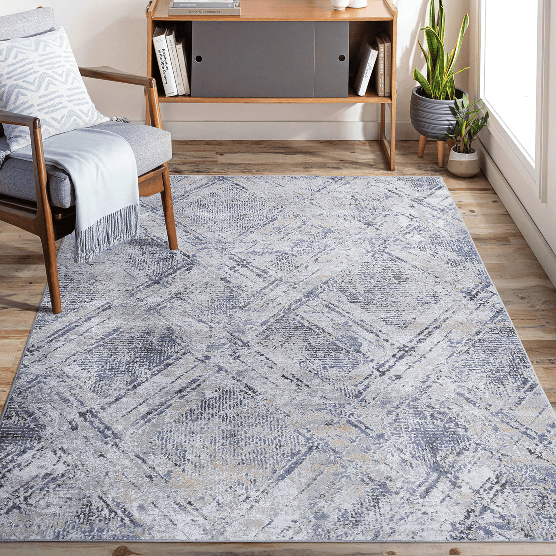 LOOM & LUXE Collection 5X7 Blue/Grey /Geometric Non-Shedding Living Room Bedroom Dining Home Office Stylish and Stain Resistant Area Rug