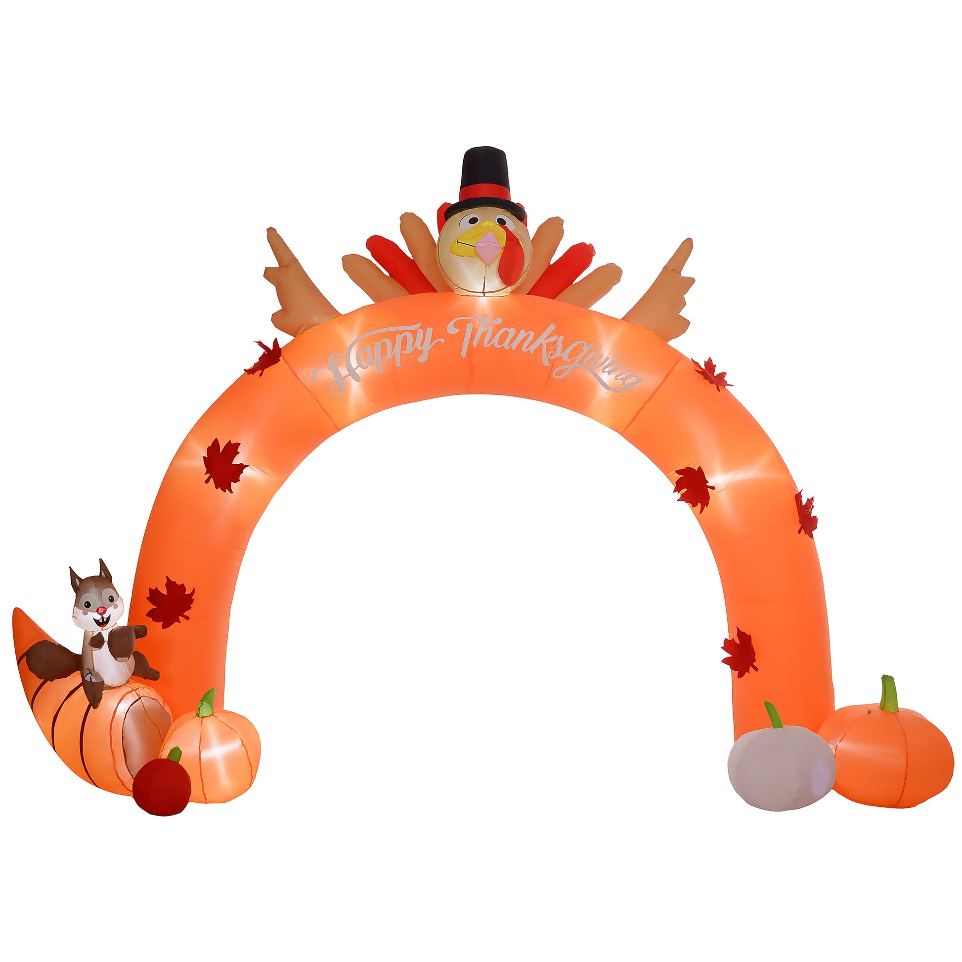HOMCOM 9.7ft Thanksgiving Inflatables Turkey Archway Outdoor Decorations, Blow Up LED Yard Display for Holiday