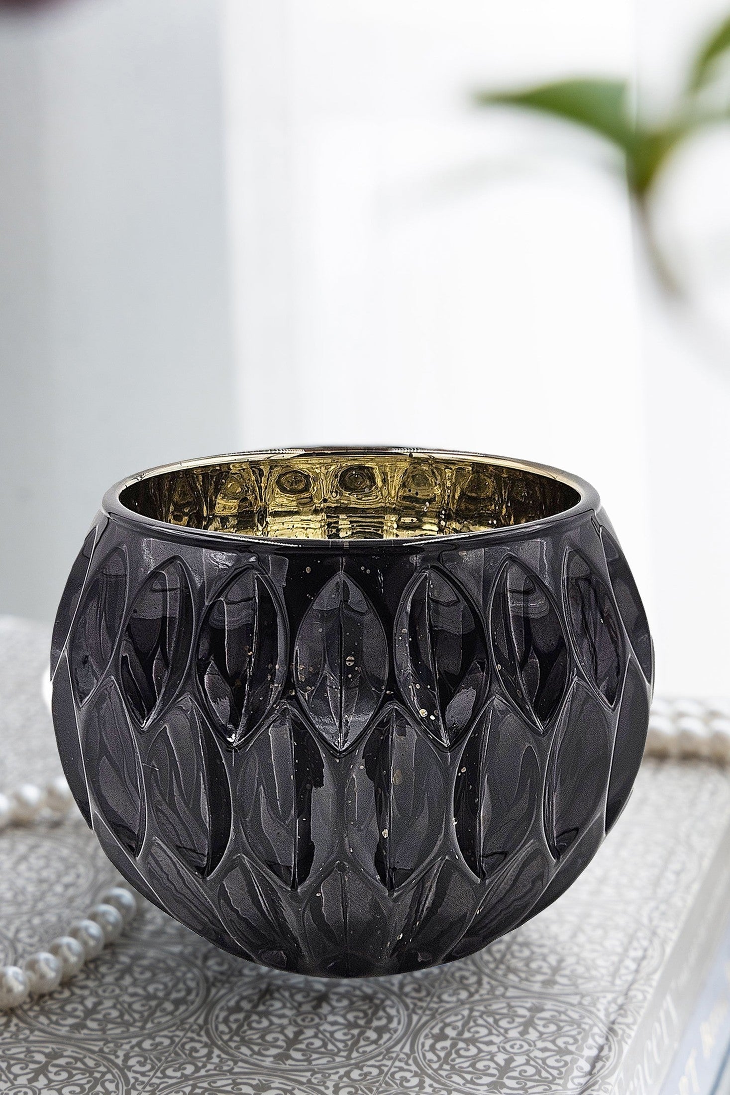 5.9' SHINY BLACK OVAL CUTOUT TEXT GLASS GOLD MERCURY INTERIOR, 4 Pack