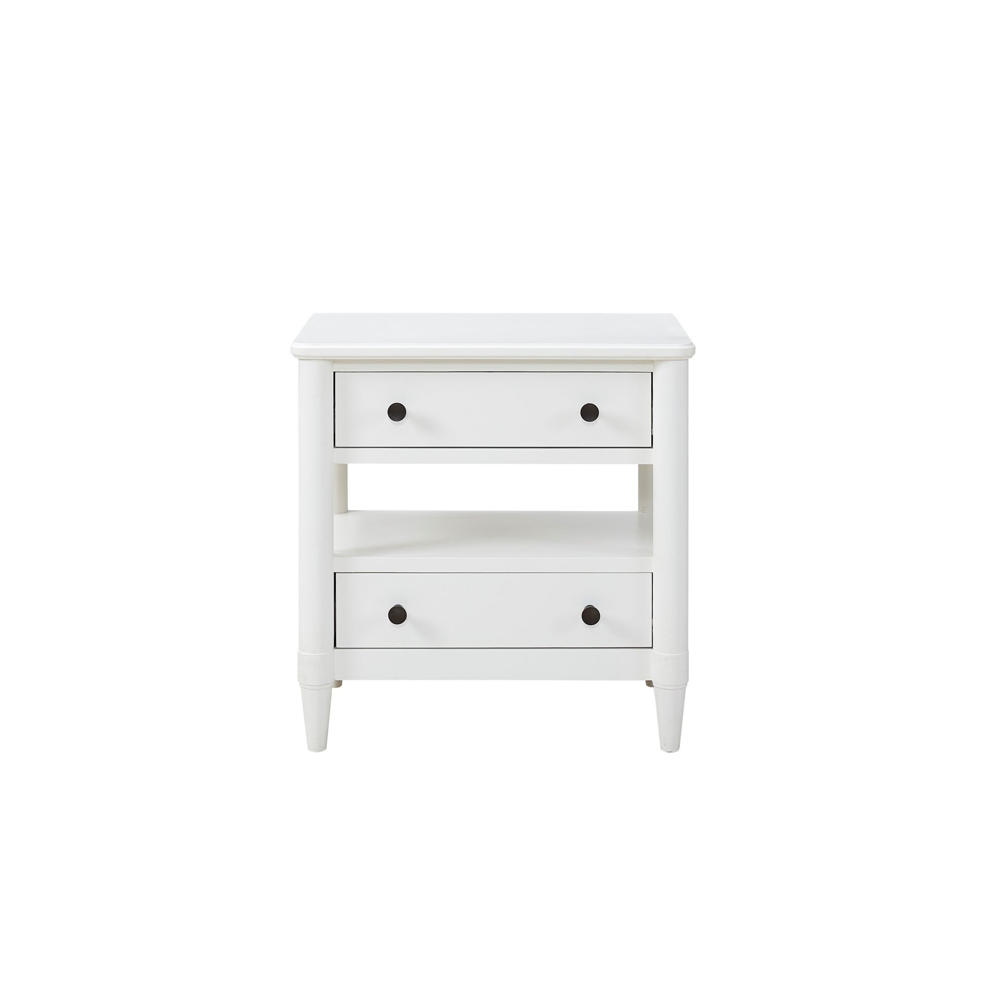 Elegant Open Nightstand with 2 Drawers in White Finish, Solid Wood and MDF, 26x17x26.75 inches