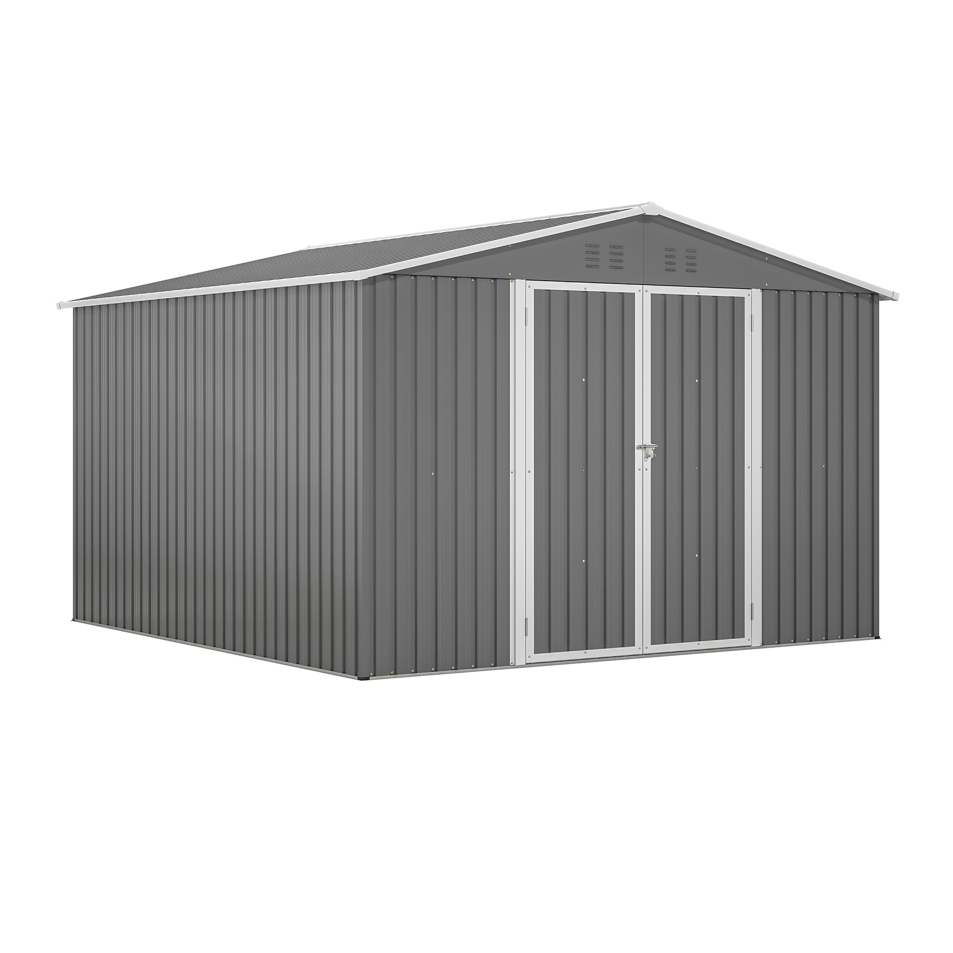 10 x 10 FT Outdoor Storage Shed, Large Metal Tool Sheds with Updated Frame Structure and Lockable Doors, Garden Shed for Backyard Garden Patio Lawn, Grey