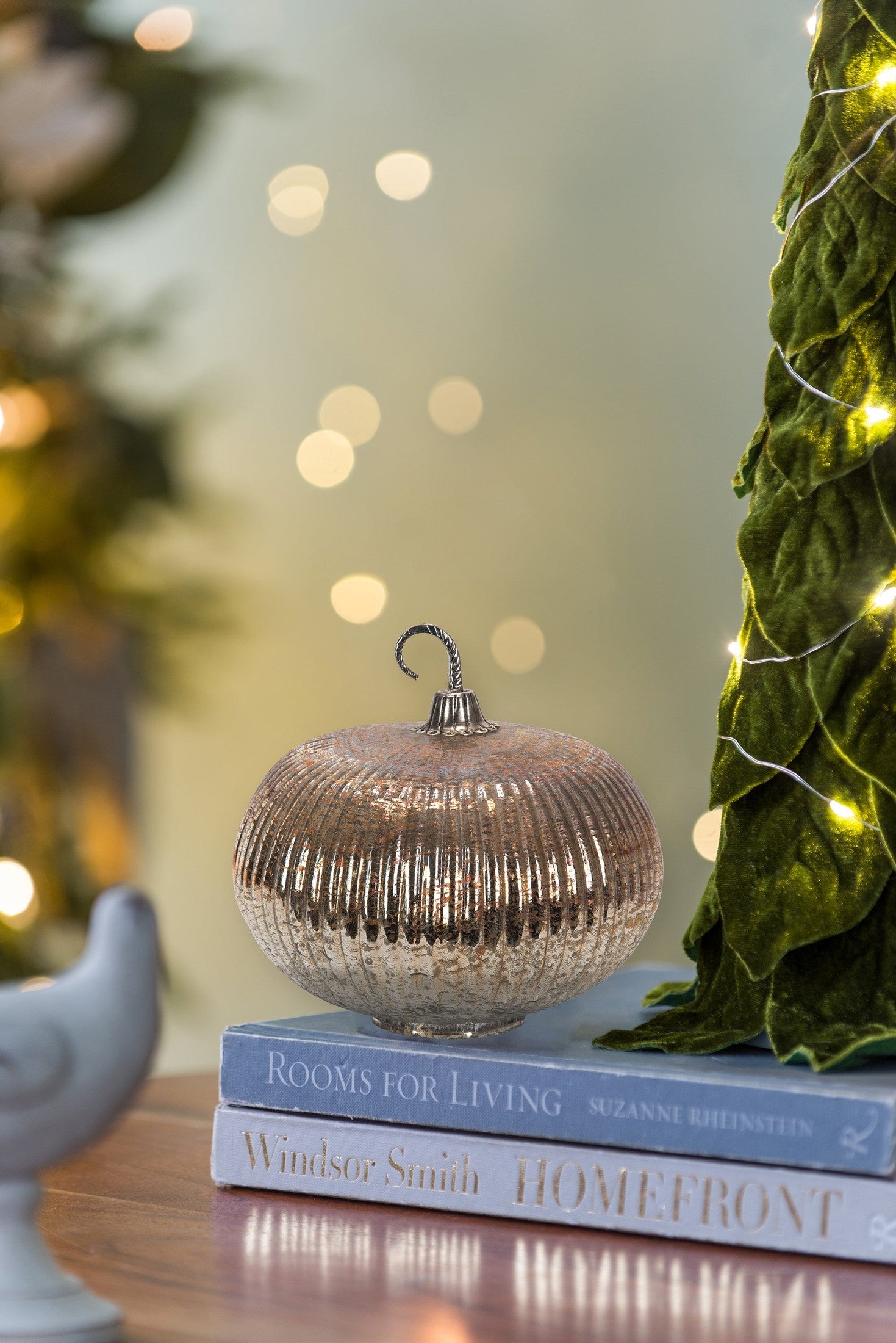 8x8x7.5' Foil Glass Lustre Mercury Pumpkin, Pumpkin Ornament Decor for Holiday Harvest Festival Fall Festival & Thanksgiving