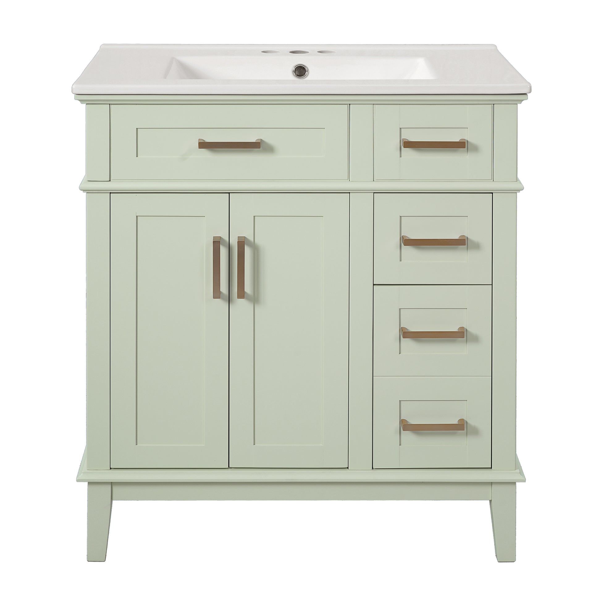 Modern 30' Bathroom Vanity with Ceramic Sink, Soft-Close Doors, Deep & Standard Drawer, Green Solid Wood & MDF