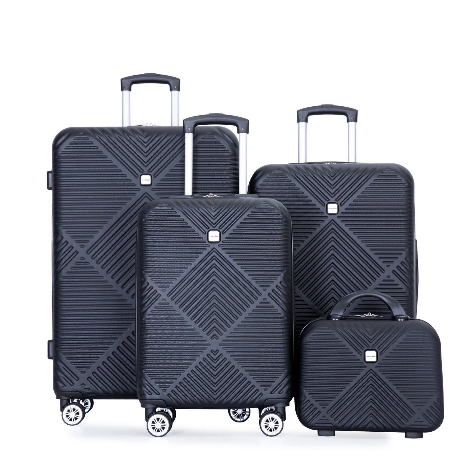 4-Piece ABS Lightweight Suitcase Set with Makeup Box and Aircraft Wheels, Black