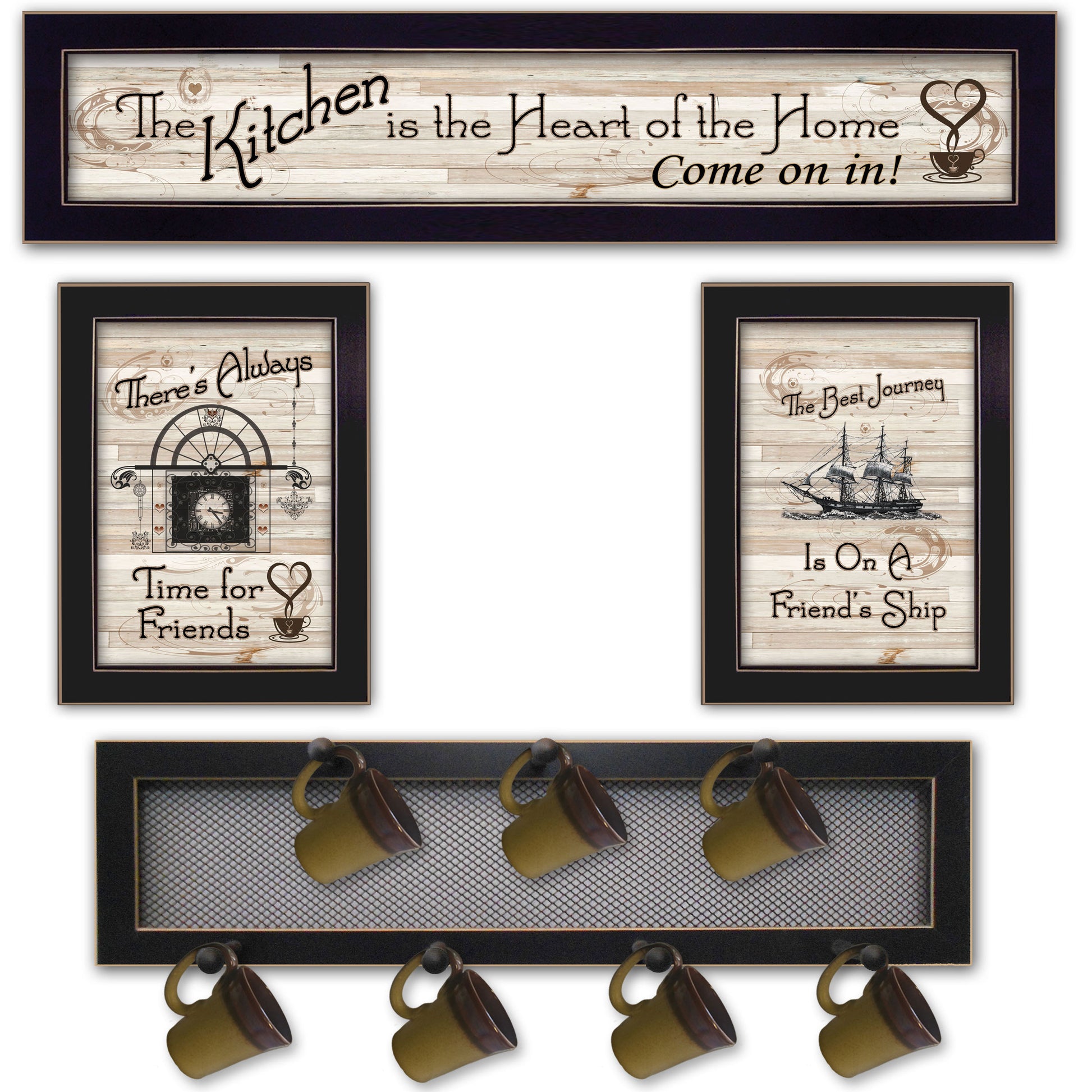 'Kitchen Collection VI' 4-Piece Vignette with 7-Peg Mug Rack by Millwork Engineering, Black Frame
