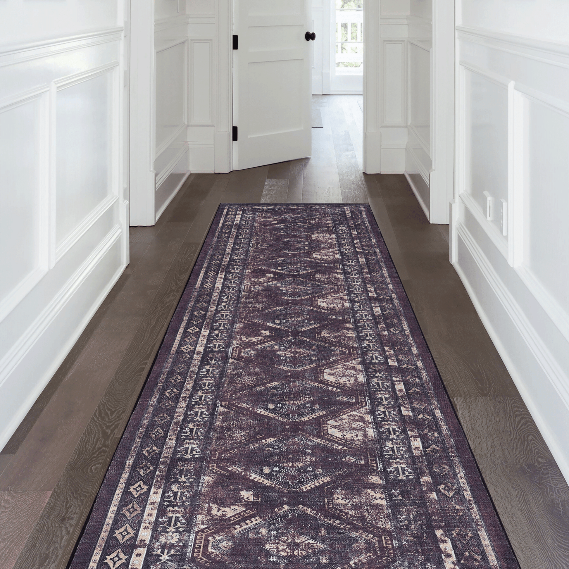 MAVAL Black Washable Rug 2'6'' x 10' Runner Rug (Black+Burgundy, 2'6'' x 10')