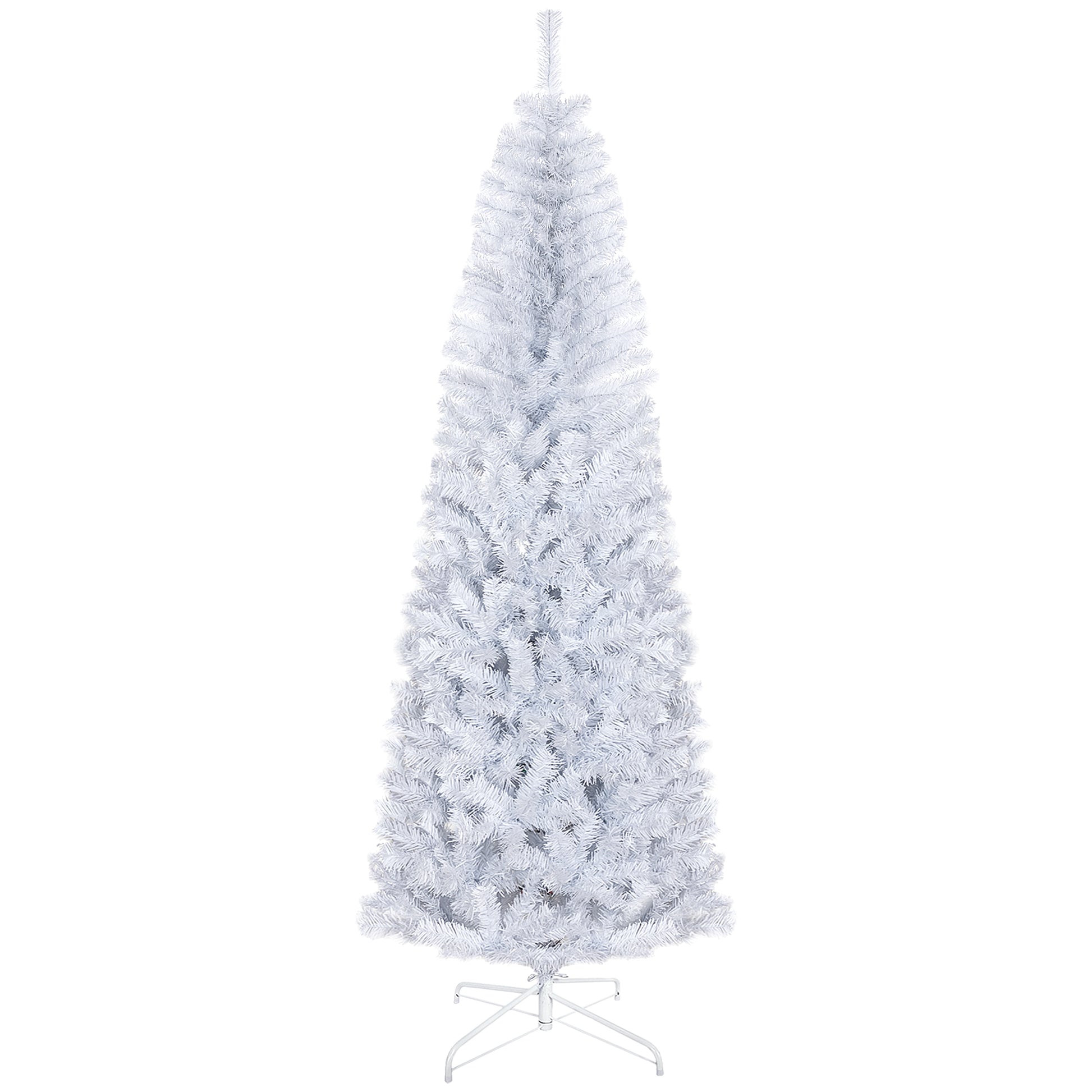 HOMCOM 7ft Pencil Christmas Tree, Unlit Artificial Christmas Tree Slim Douglas Fir Xmas Tree with Realistic Branches, Halloween Tree with 818 Tips, White