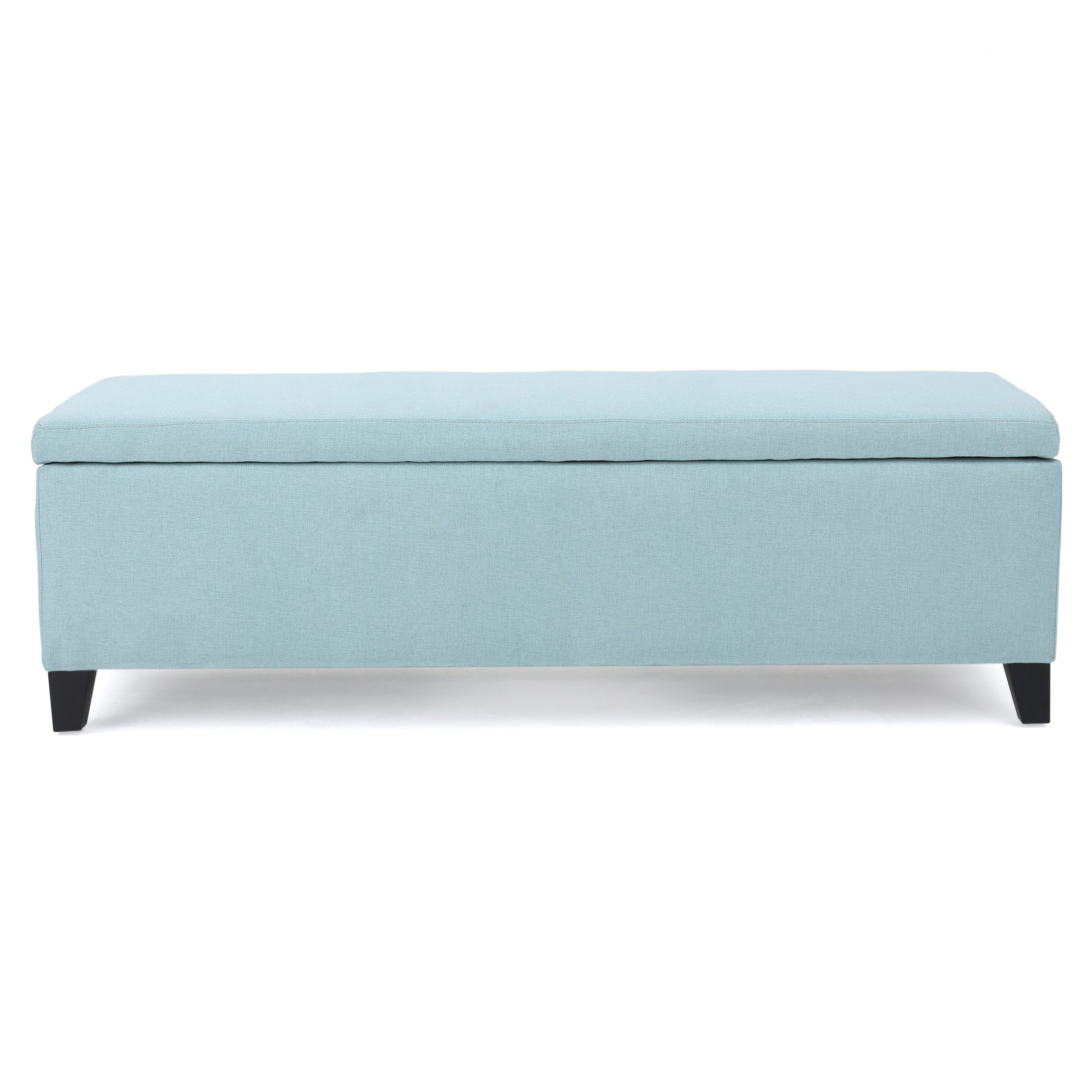 Contemporary Storage Ottoman with Extra Seating Functionality in Light Blue Fabric