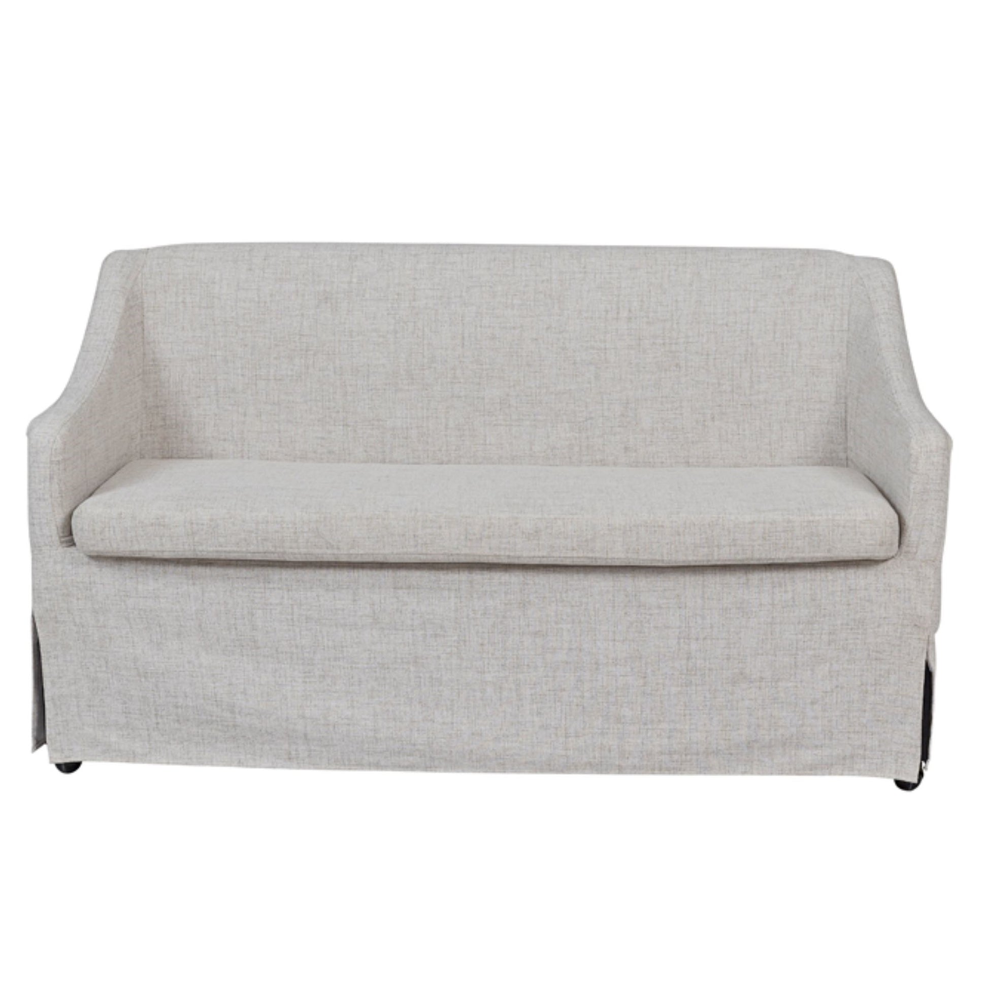 Transitional Casual Slip Covered Settee with Casters in Beige Upholstered Fabric