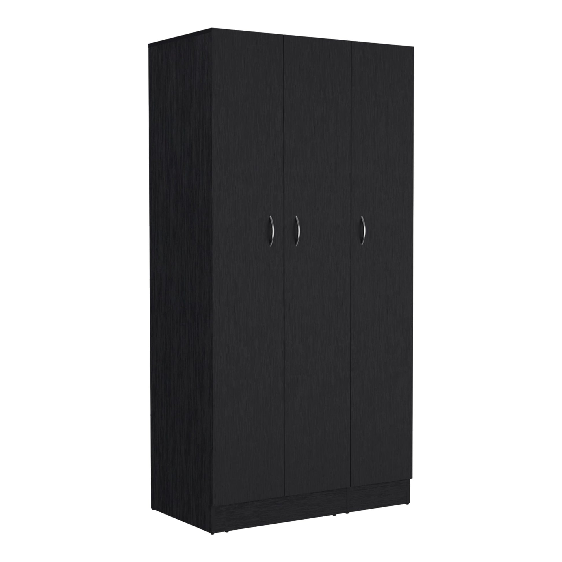 Modern Wardrobe Armoire 71'H with 3-Doors and 2-Inner Drawers in Black Particle Board